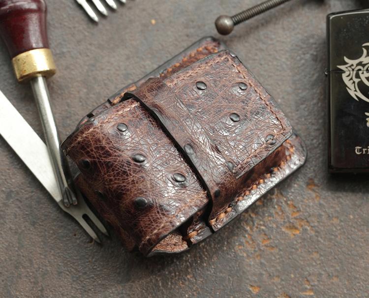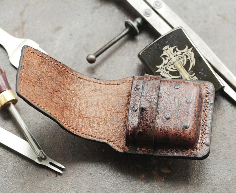 Design: Brown Ostrich Leather Mens Holster Zippo Lighter Cases Standard Zippo Lighter Holder For Men