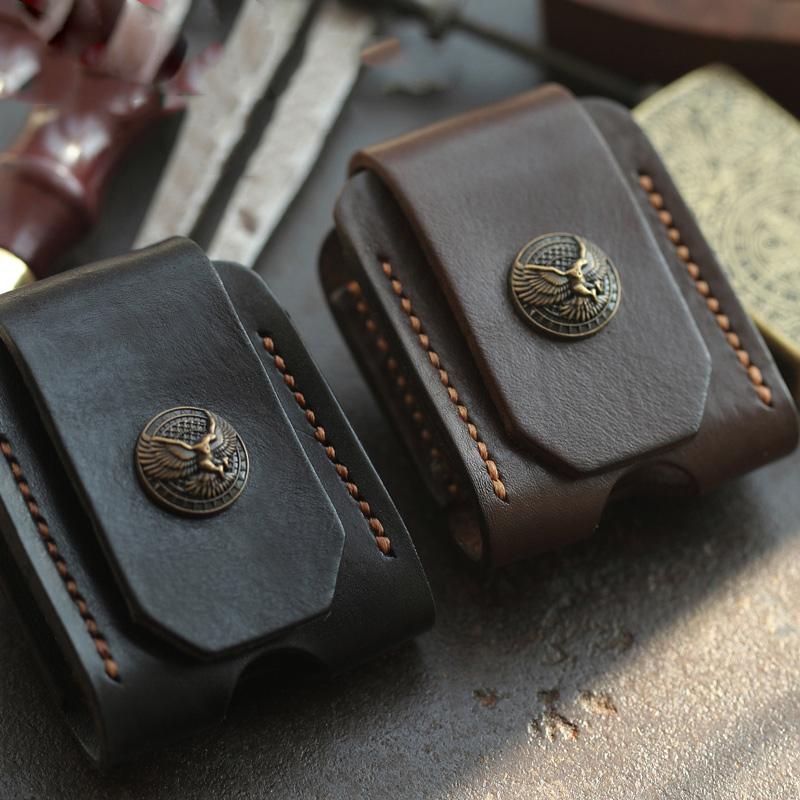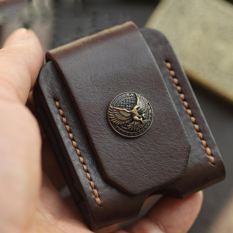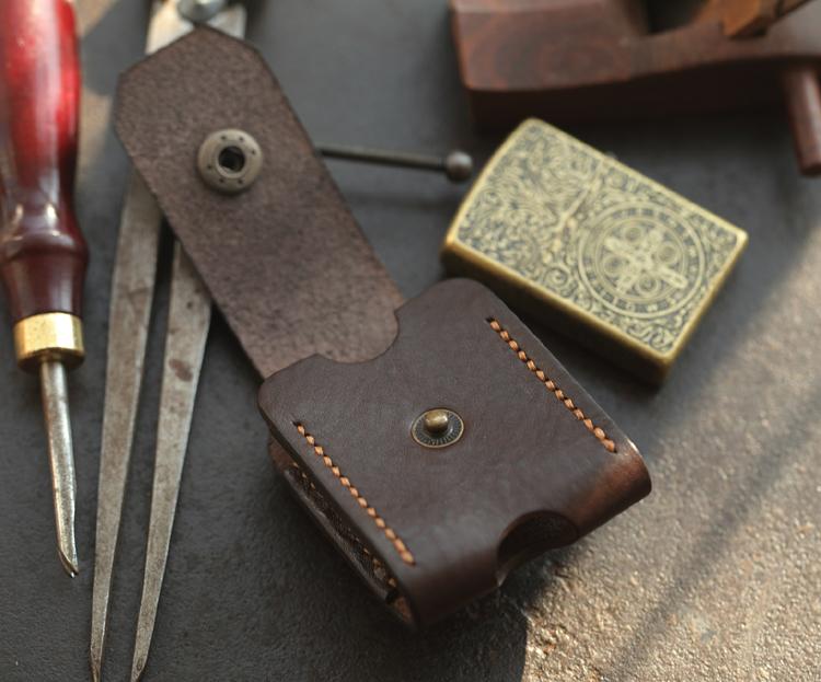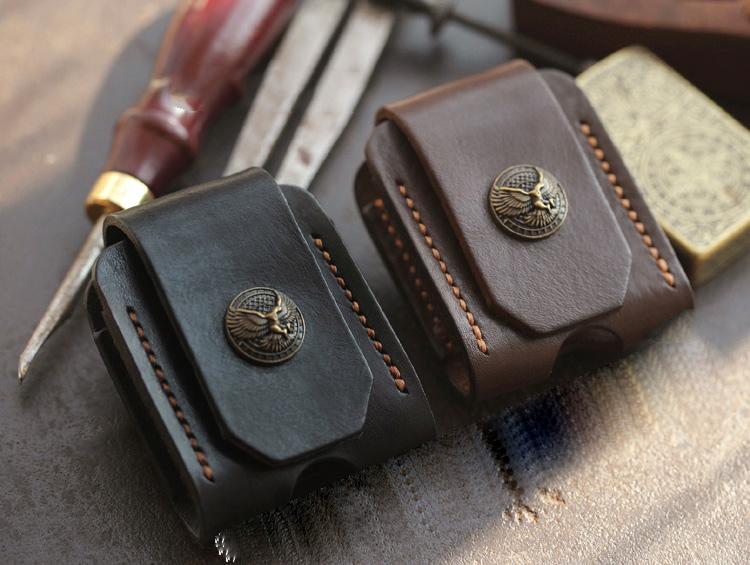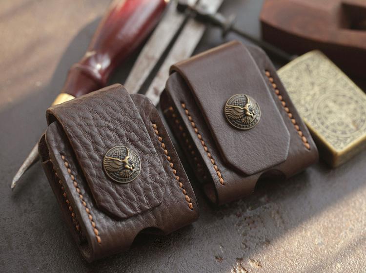 Design: Chocolate Genuine Handmade Leather Mens Lighter Case With Belt Loop Cool Standard Lighter Holders For Men