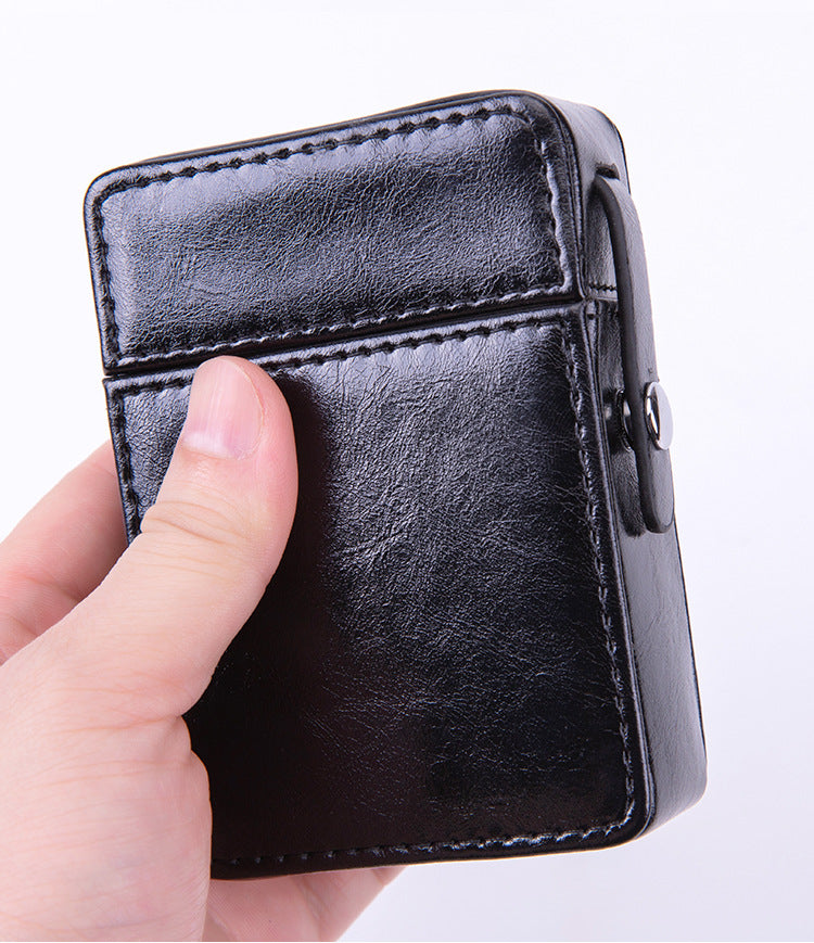 Design: Classic Eco Leather Mens 20pcs Cigarette Holder Case with lighter holder Green Cigarette Case for Men