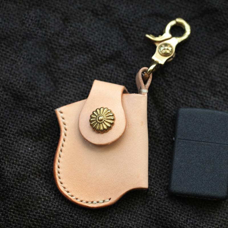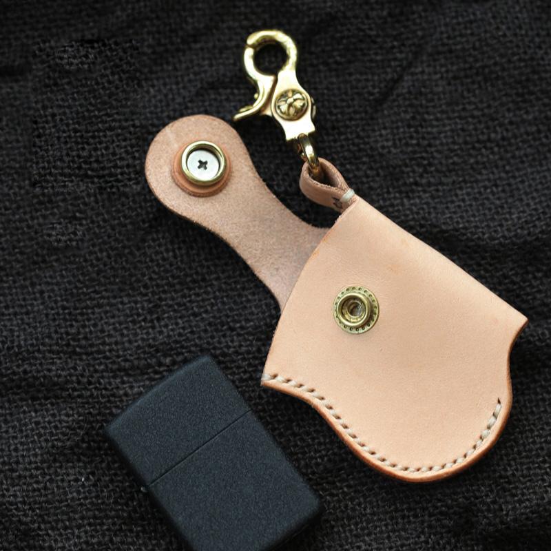 Design: Cool Beige Keychain Leather Mens Zippo Lighter Cases With Belt Loop Lighter Holders For Men