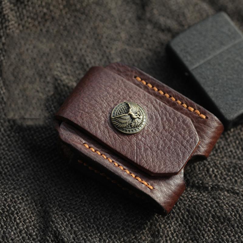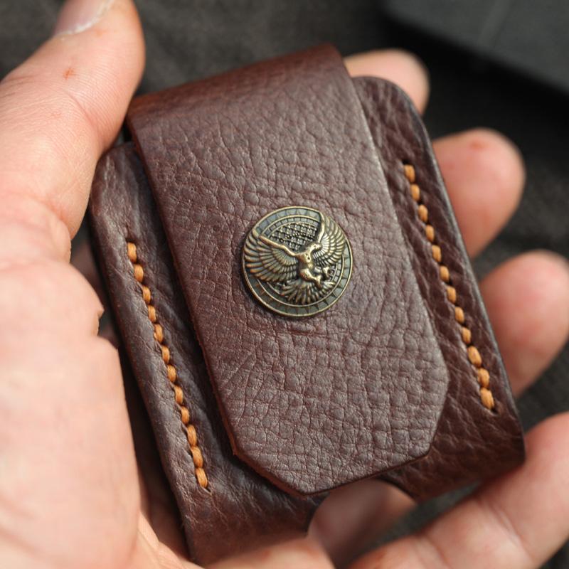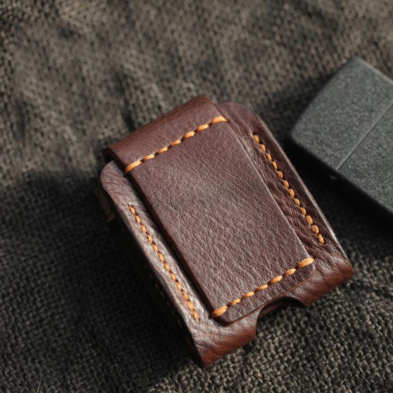 Style: Cool Brown Handmade Leather Mens Zippo Lighter Case Lighter Holders For Men