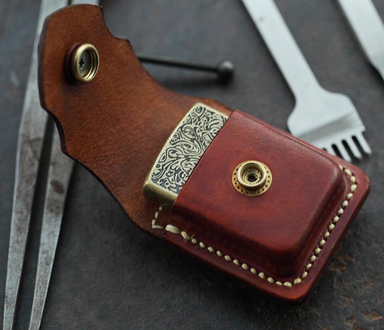 Design: Cool Brown Leather Mens Holster Zippo Lighter Case Standard Zippo Lighter Holder For Men