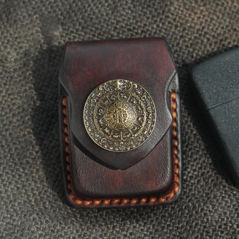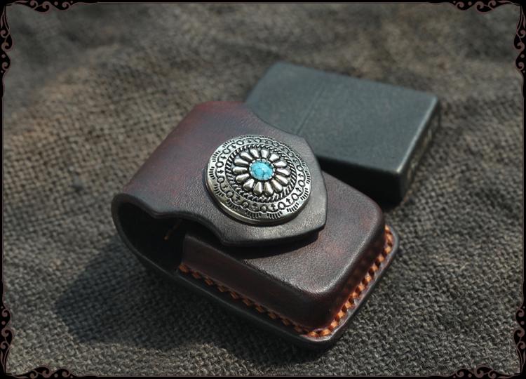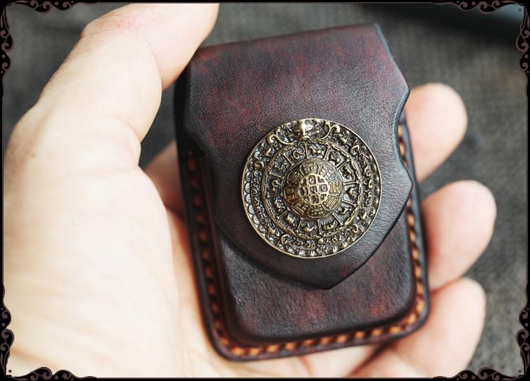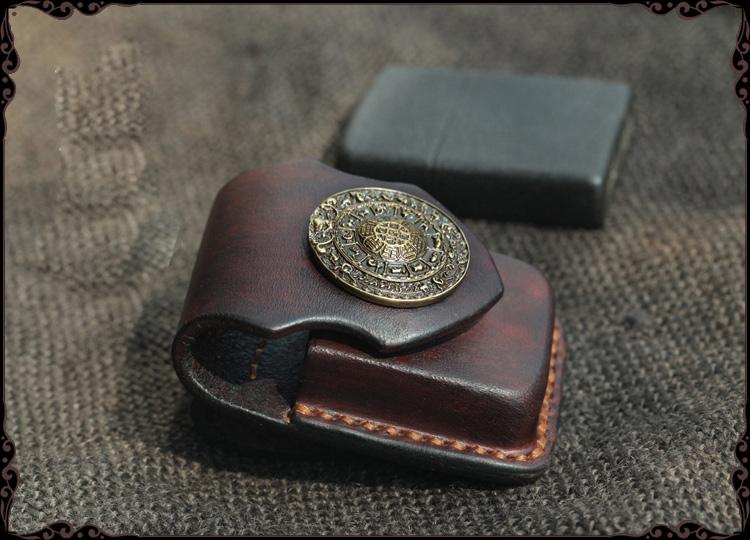 Design: Cool Handmade Brown Leather Mens Calibu Zippo Lighter Case Standard Lighter Holder for Men