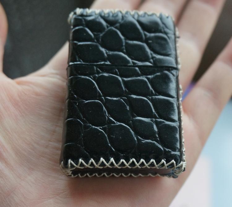 Design: Cool Handmade Black Leather Mens Classic Zippo Lighter Case Standard Zippo Lighter Holder for Men