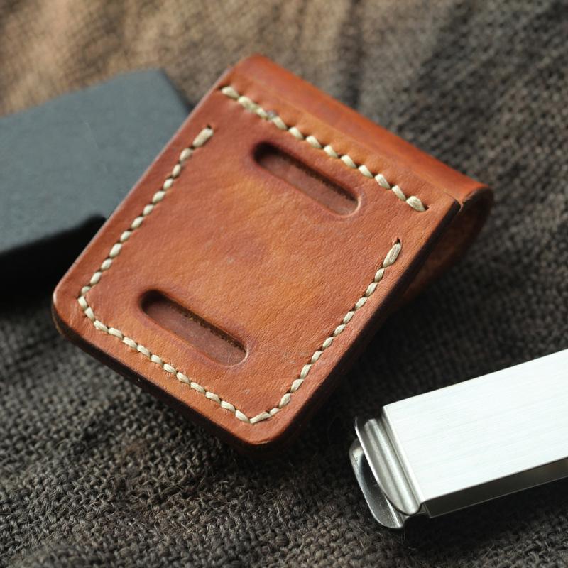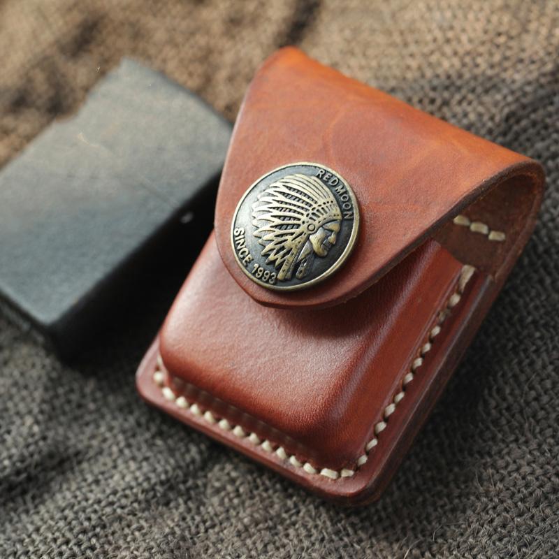Design: Cool Light Brown Handmade Leather Mens Caibu Lighter Case Lighter Holders For Men