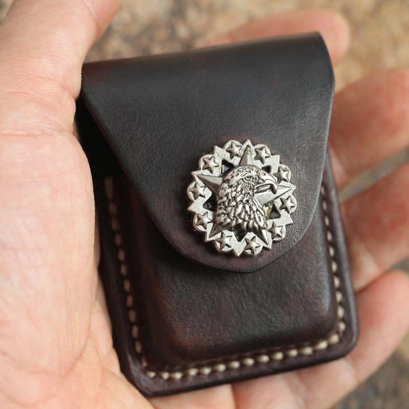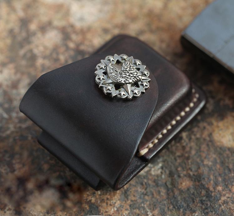 Cool Mens Leather Eagle Zippo Lighter Case with Loop Zippo lighter Holder with clips