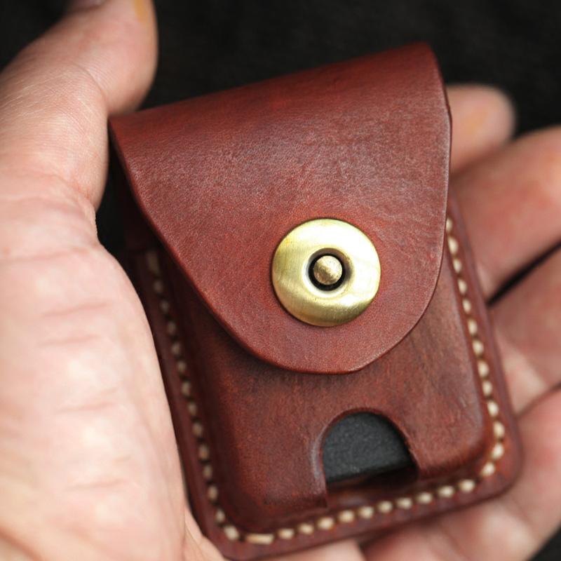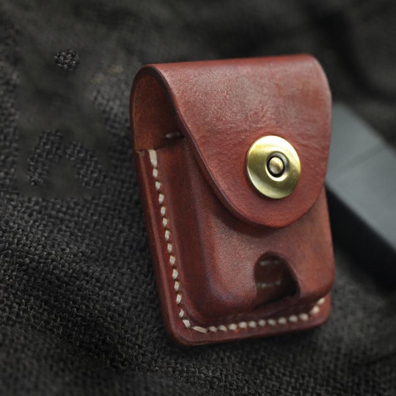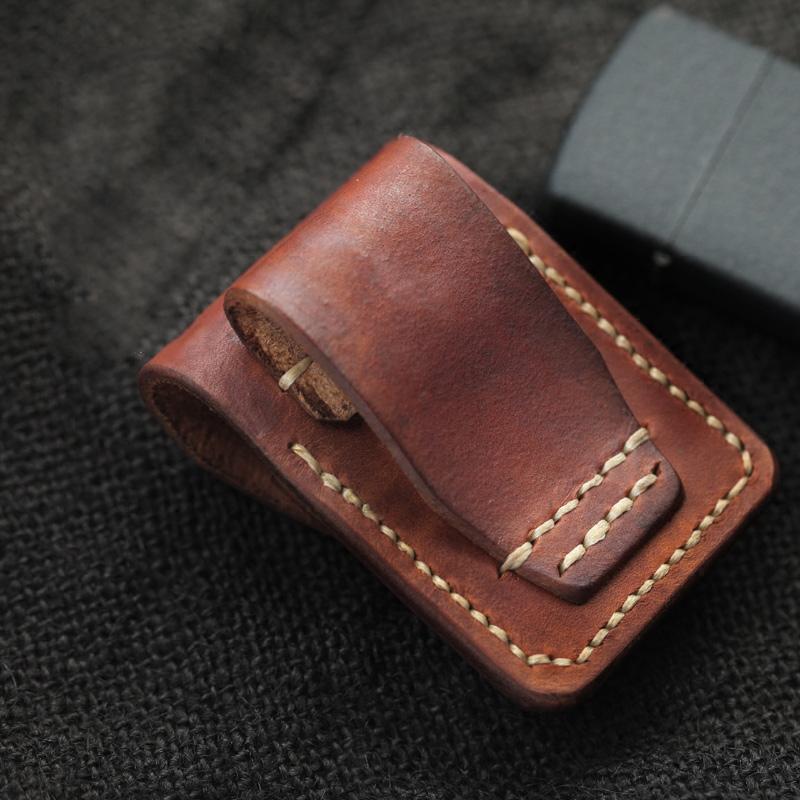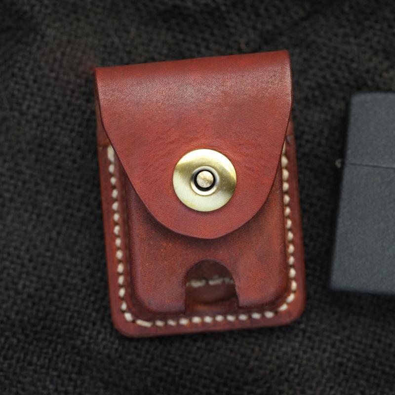 Style: Cool Red Brown Handmade Leather Mens Zippo Lighter Case With Belt Loop Lighter Holders For Men