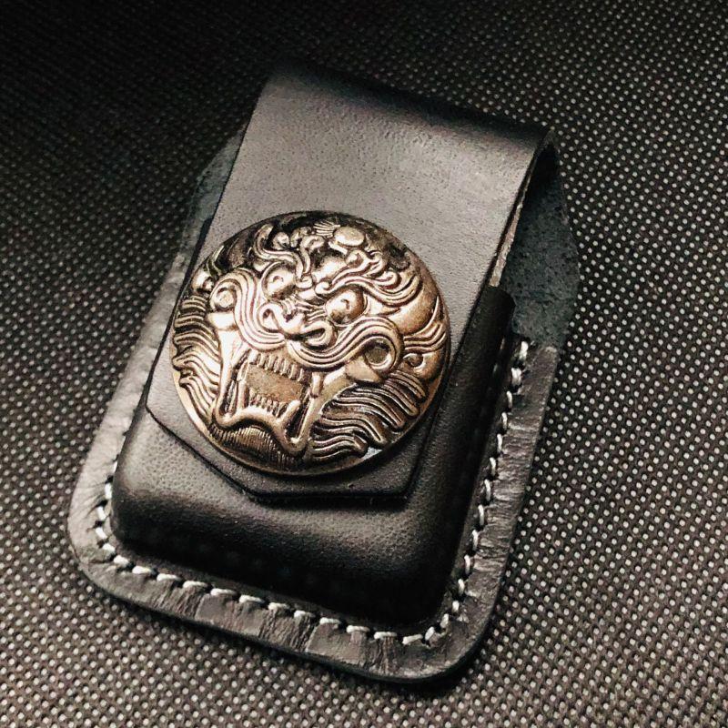 Brown Handmade Leather Mens Chinese Lion Zippo Lighter Holders Lighter Case For Men