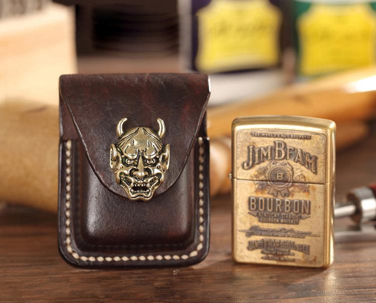 Style: Dark Brown Genuine Handmade Leather Mens Lighter Case With Belt Loop Cool Standard Lighter Holders For Men