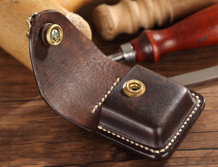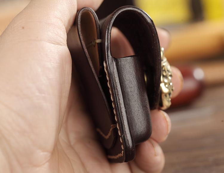 Design: Dark Brown Genuine Handmade Leather Mens Lighter Case With Belt Loop Cool Standard Lighter Holders For Men