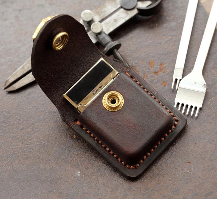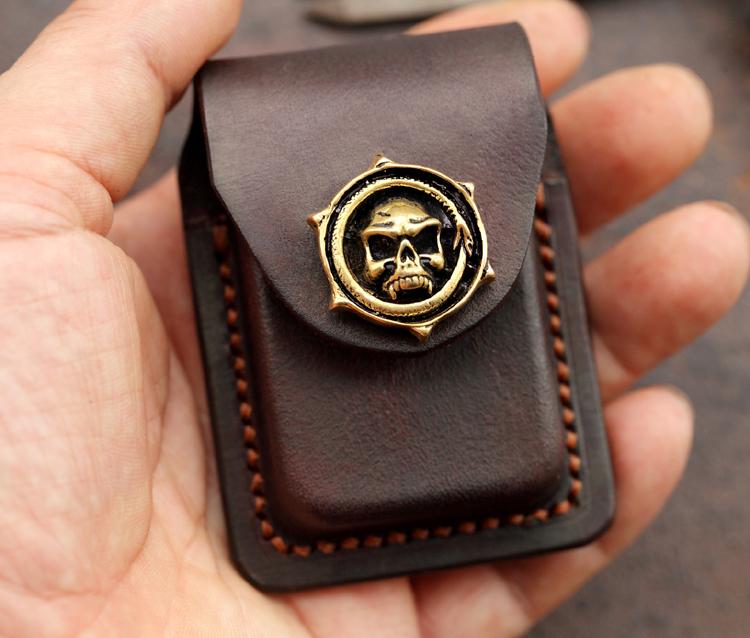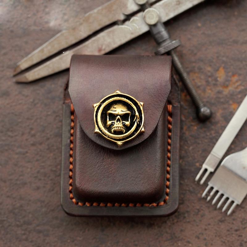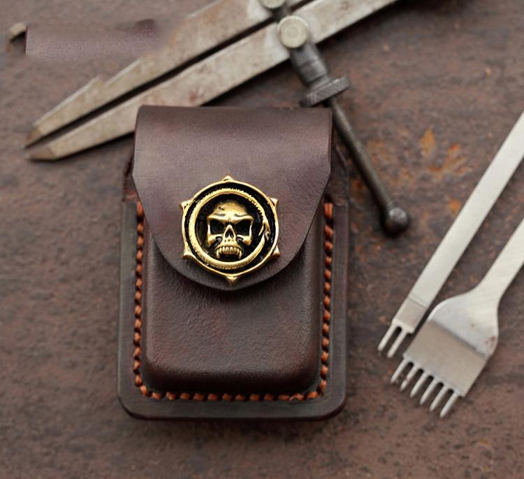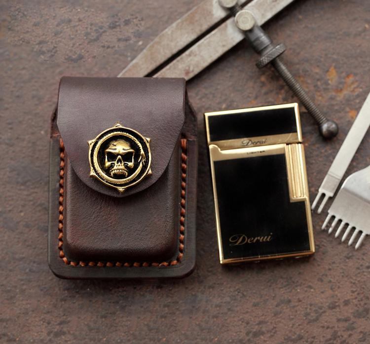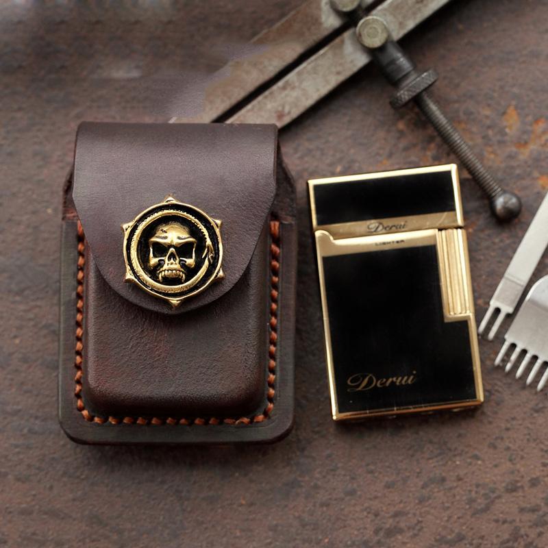 Style: Skull Brown Leather Mens S.T.Dupont Lighter Cases Ronson Lighter Holder For Men