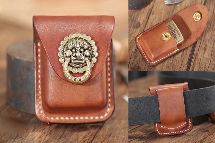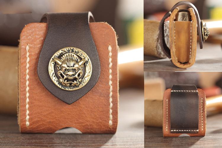Design: Genuine Brown Handmade Leather Mens Lighter Case With Belt Loop Cool Standard Lighter Holders For Men