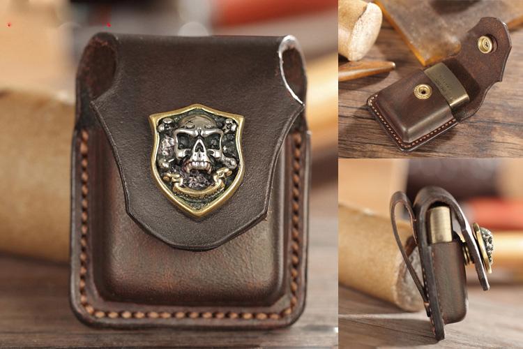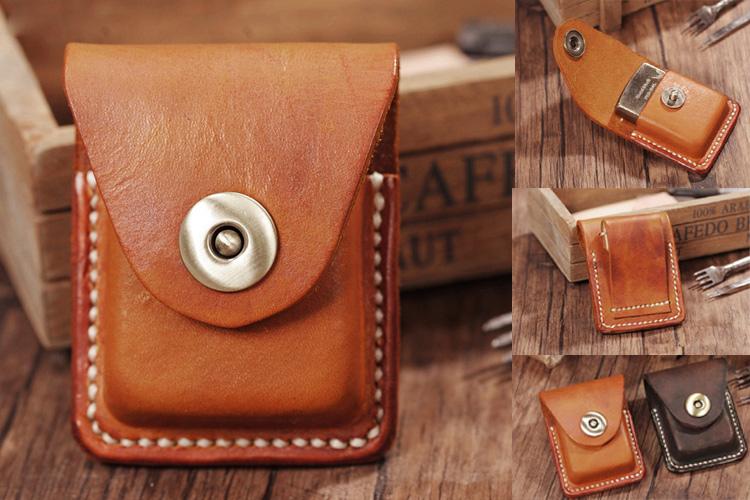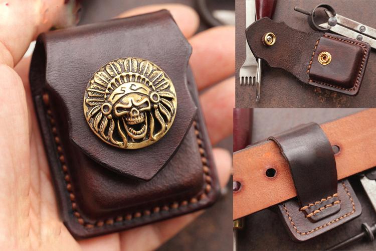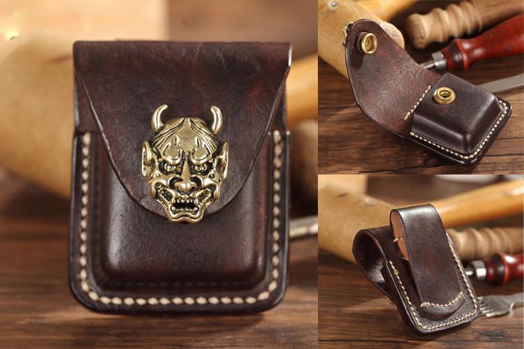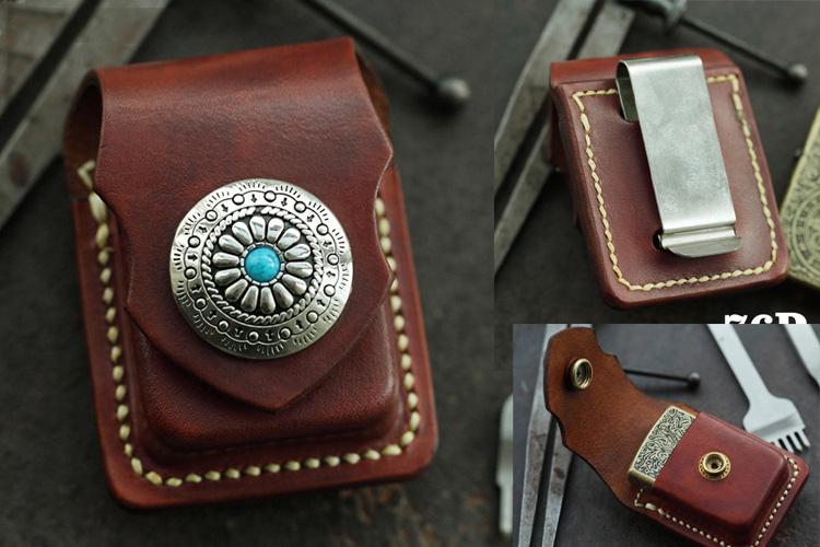 Style: Genuine Brown Handmade Leather Mens Lighter Case With Belt Loop Cool Standard Lighter Holders For Men