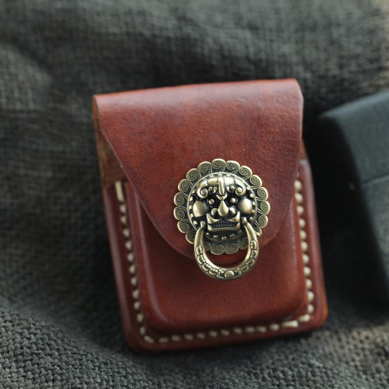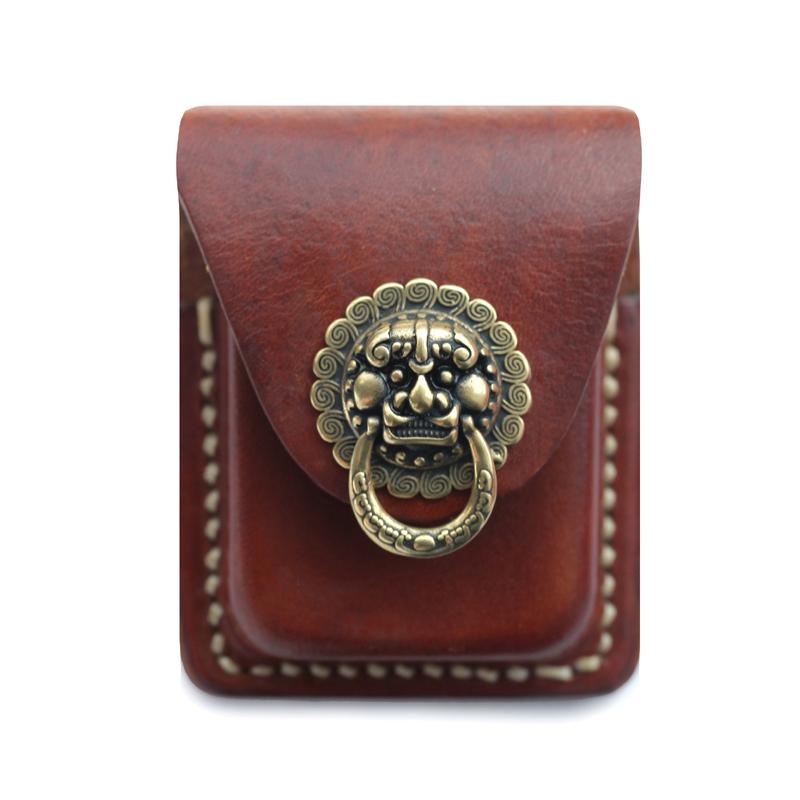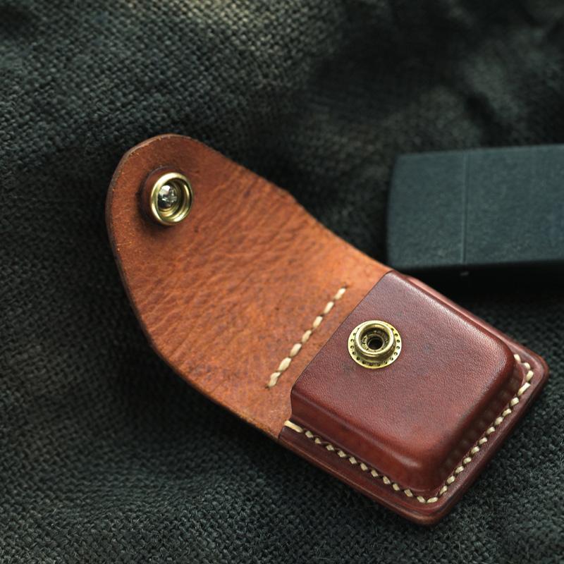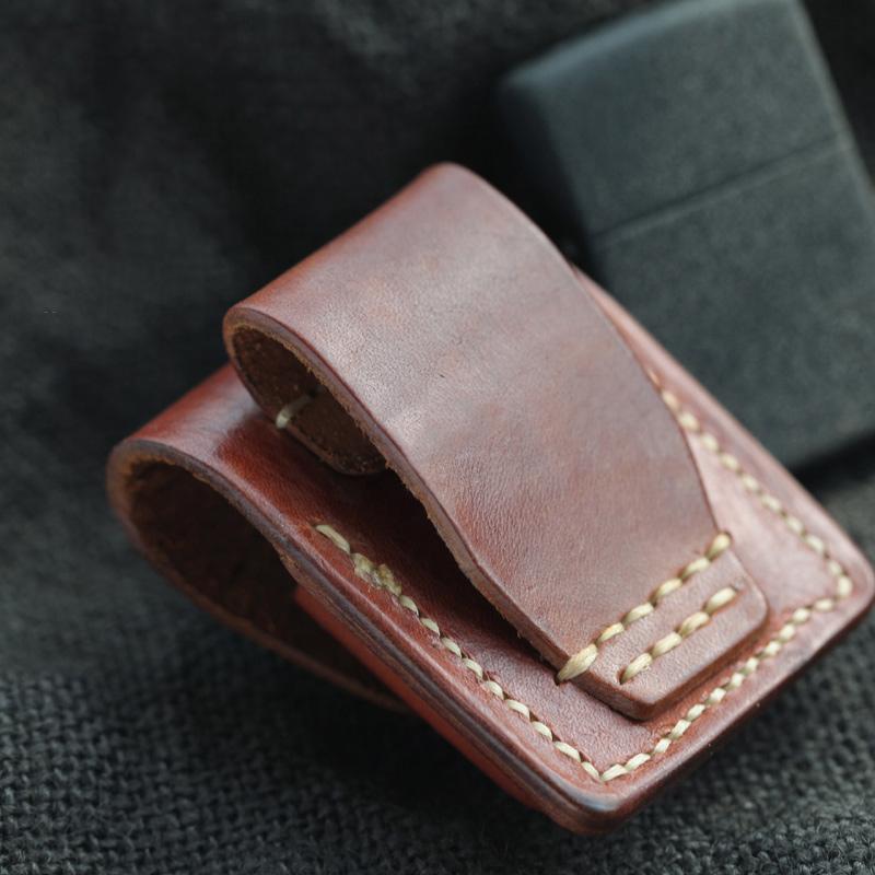 Style: Genuine Brown Handmade Leather Mens Zippo Lighter Case Lighter Holders For Men
