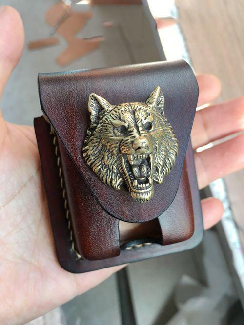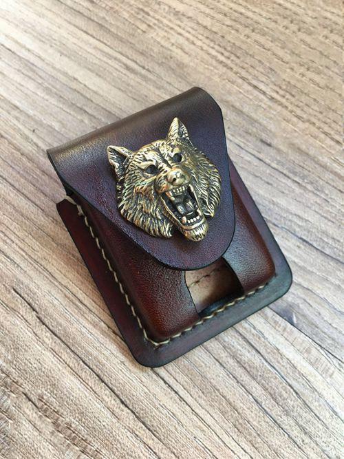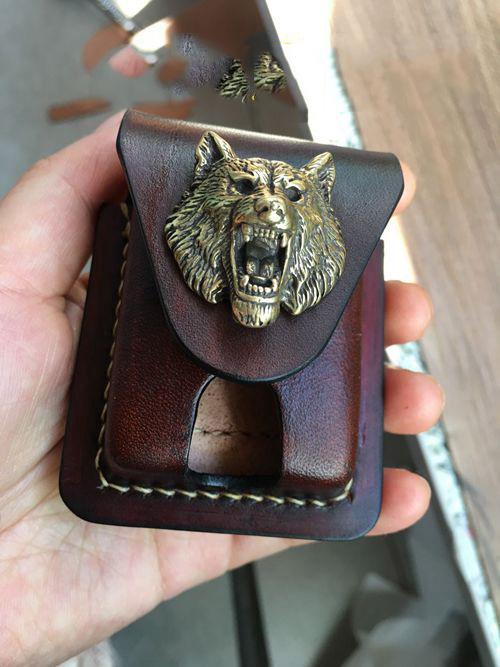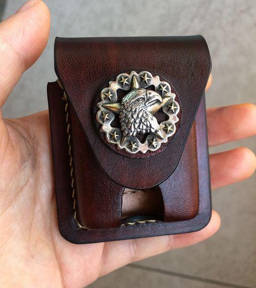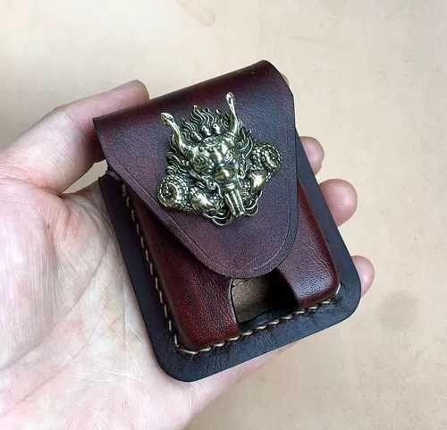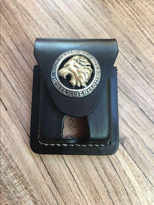 Design: Handmade Brown Thick Leather Lighter Cover Black Protective Lighter Cover For Men