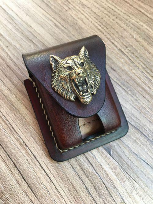 Style: Handmade Brown Thick Leather Lighter Cover Black Protective Lighter Cover For Men