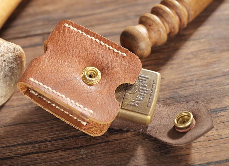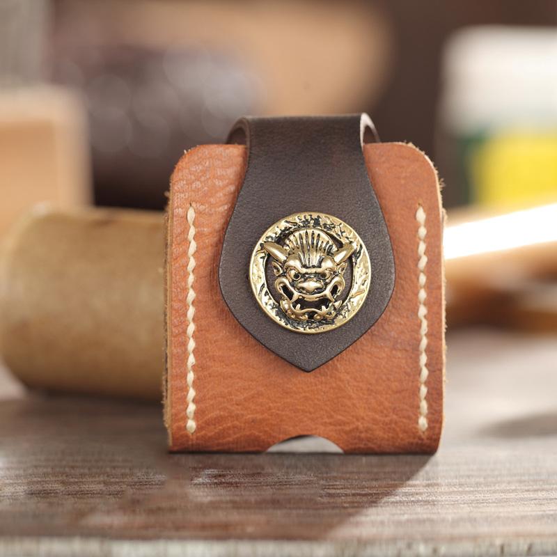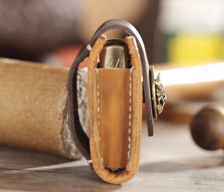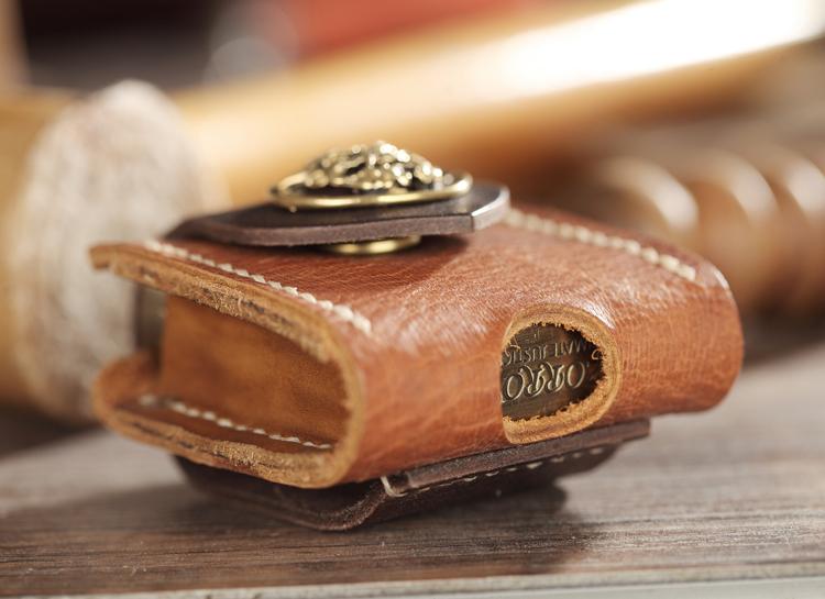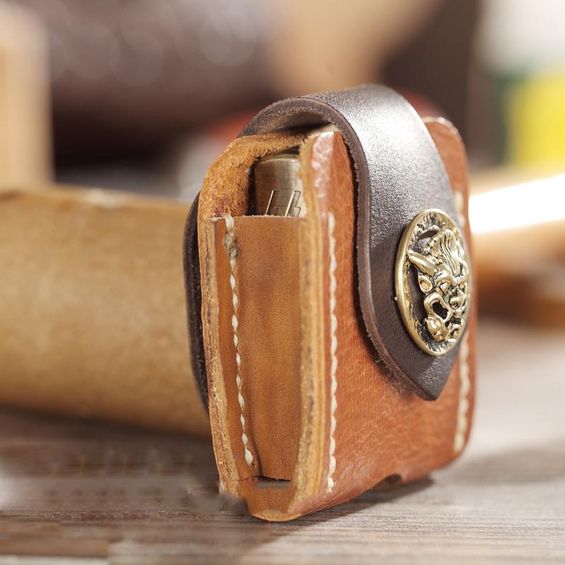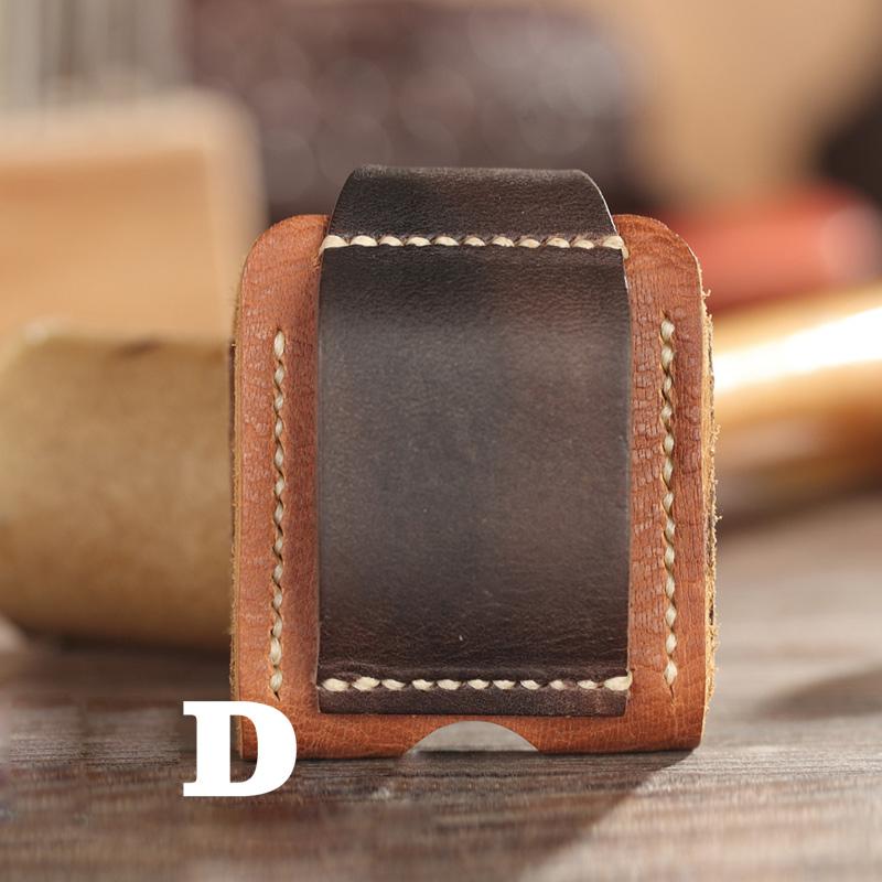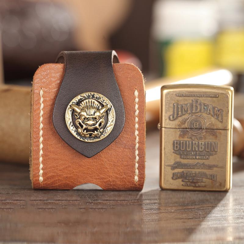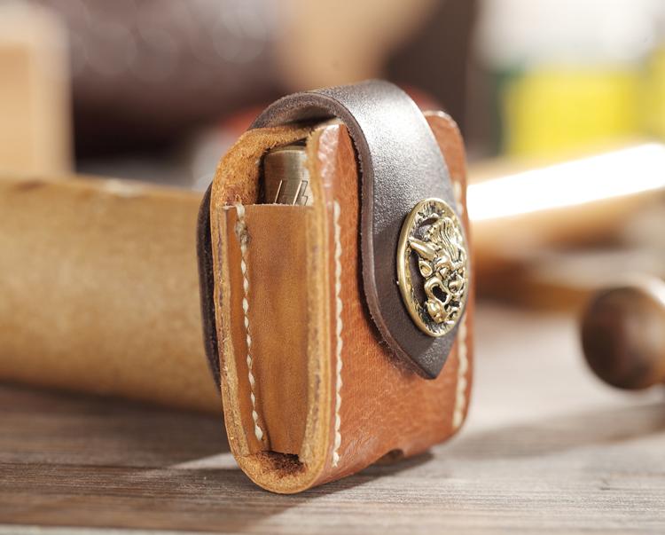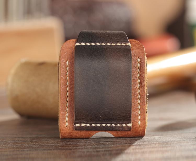 Style: Handmade Two-Toned Brown Leather Mens Zippo Lighter Cases With Belt Loop Zippo Standard Lighter Holders For Men