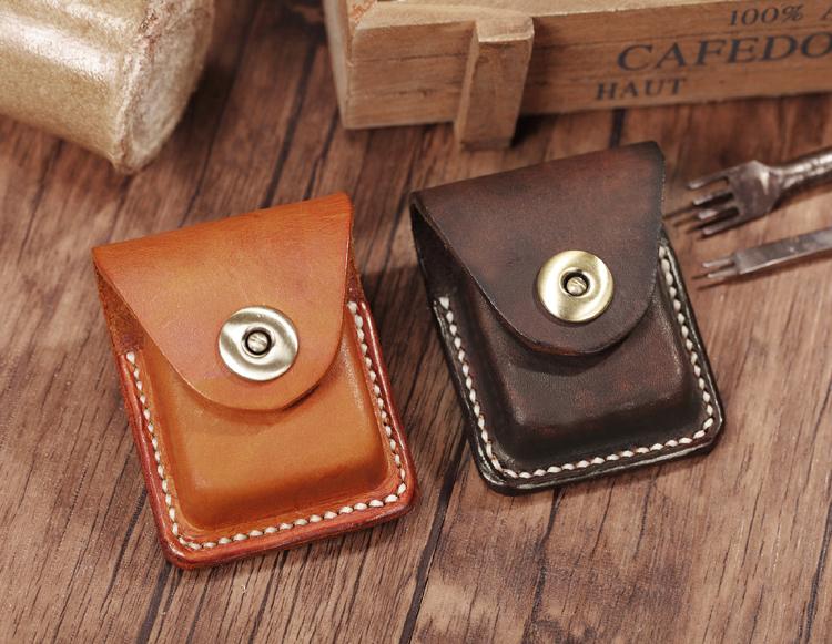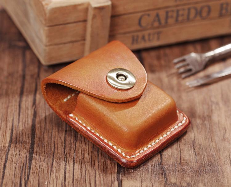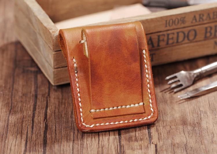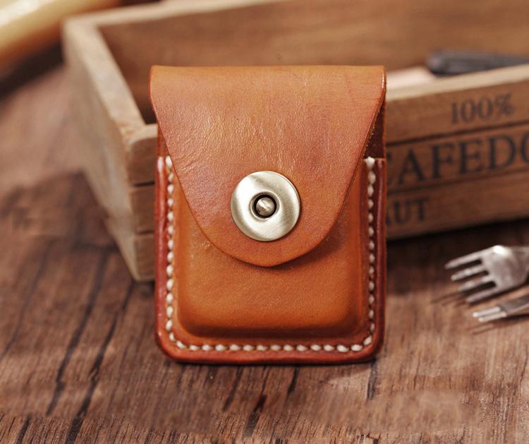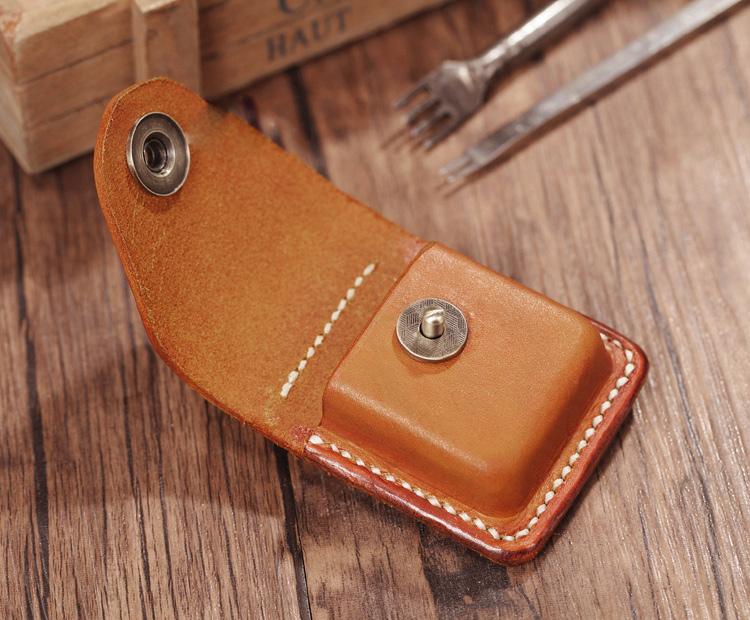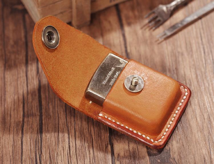 Design: Light Brown Handmade Leather Mens Zippo Lighter Case With Belt Loop Zippo Standard Lighter Holders For Men