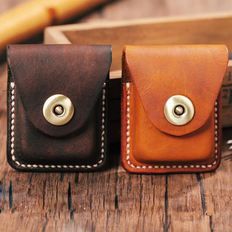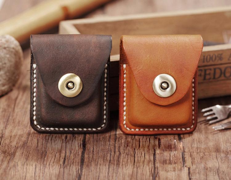Style: Light Brown Handmade Leather Mens Zippo Lighter Case With Belt Loop Zippo Standard Lighter Holders For Men