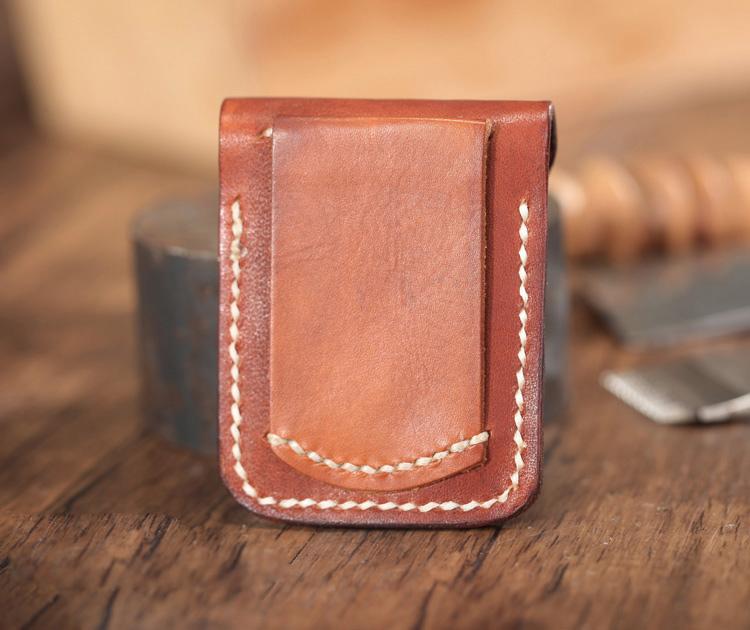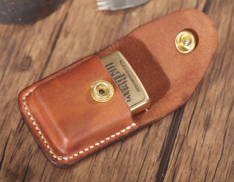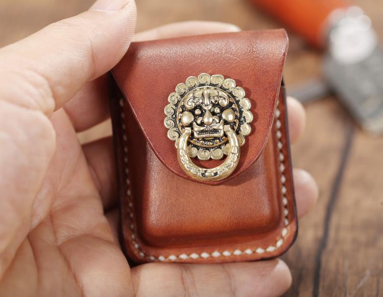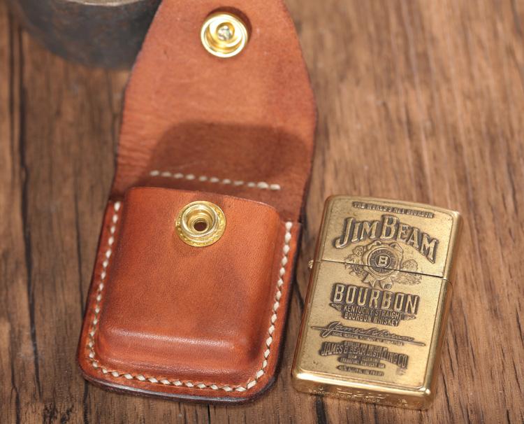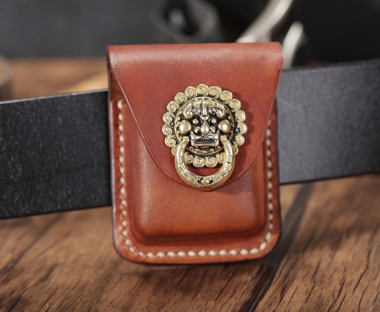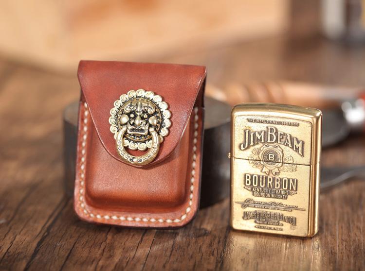 Design: Light Brown Leather Mens Holster Zippo Lighter Case Standard Zippo Lighter Holder with Belt Clip For Men