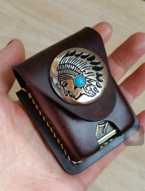 Design: Handmade Red Wine Thick Leather Lighter Cover Protective Lighter Cover For Men