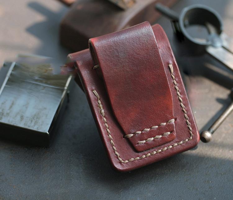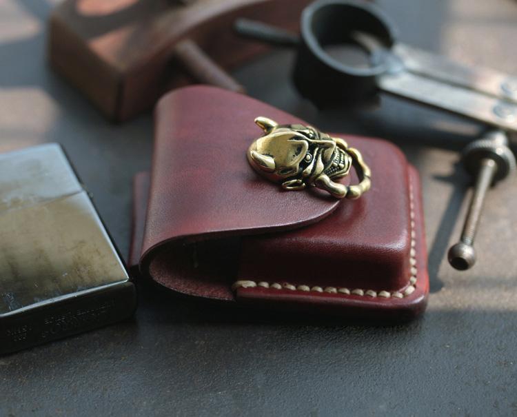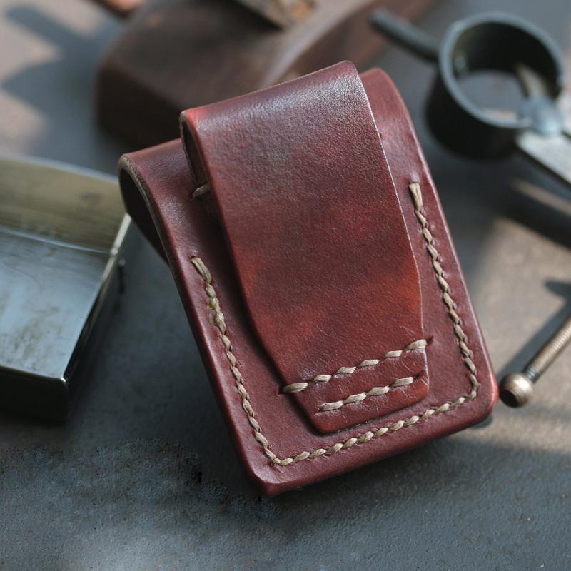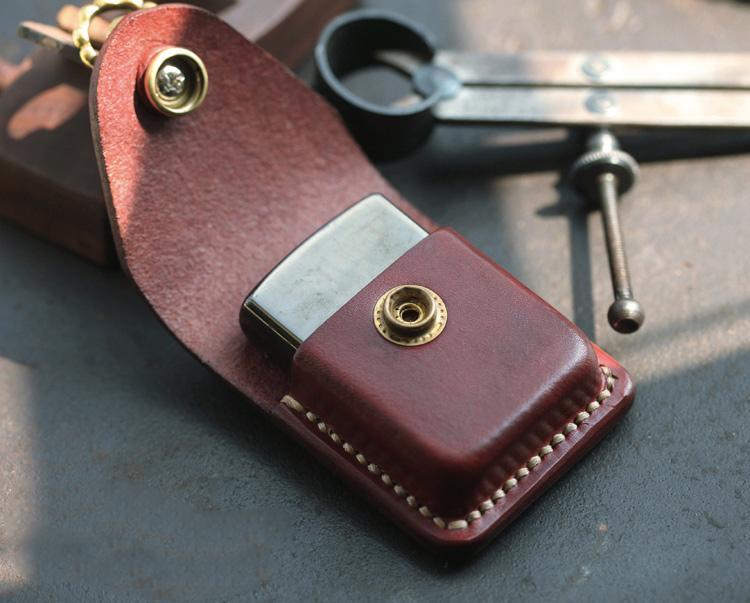 Design: Red Brown Genuine Handmade Leather Mens Lighter Case With Belt Loop Cool Standard Lighter Holders For Men