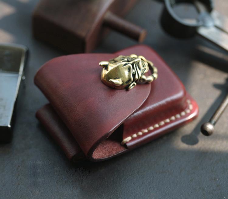 Style: Red Brown Genuine Handmade Leather Mens Lighter Case With Belt Loop Cool Standard Lighter Holders For Men