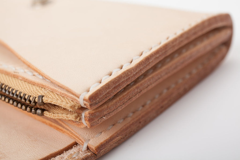 Design: Beige Handmade Leather Mens Long Wallet Bifold Card Wallets Buckle Wallet For Men