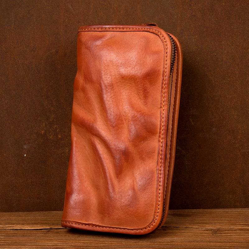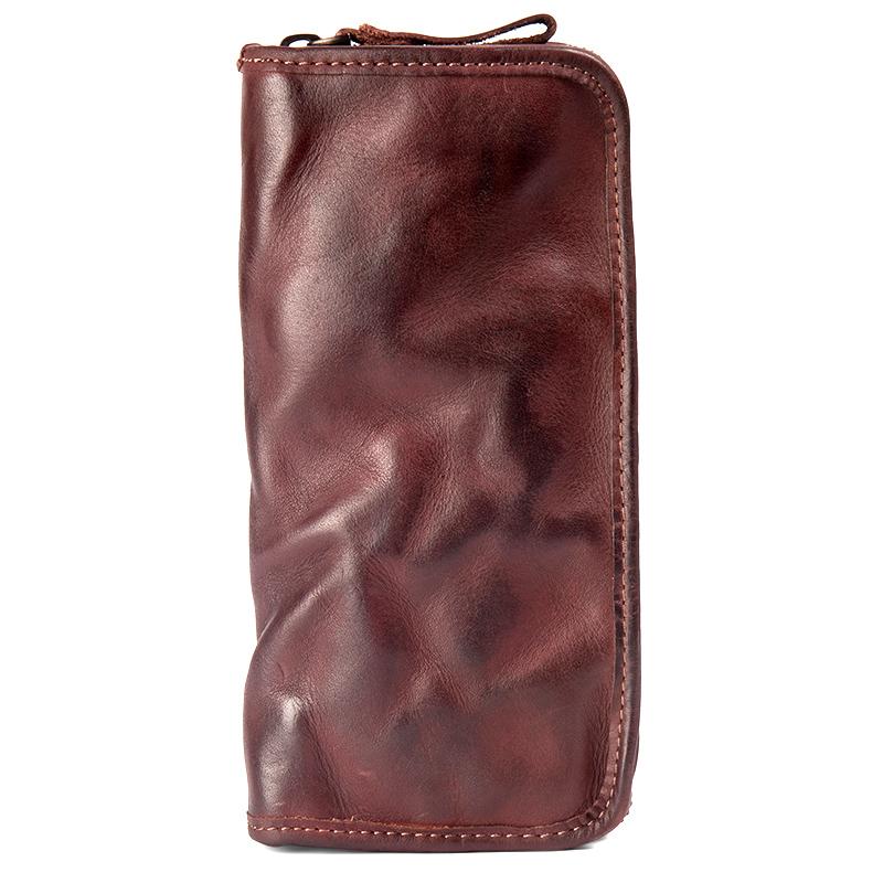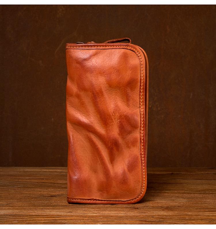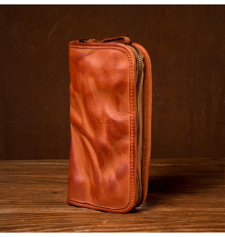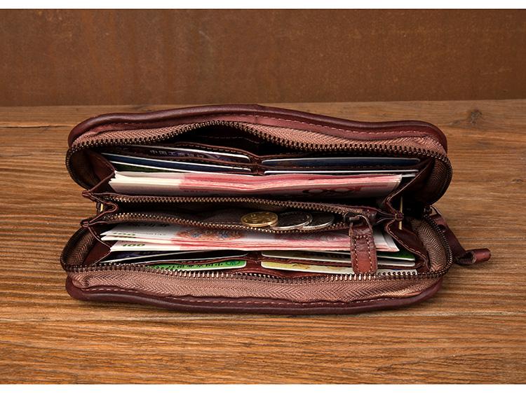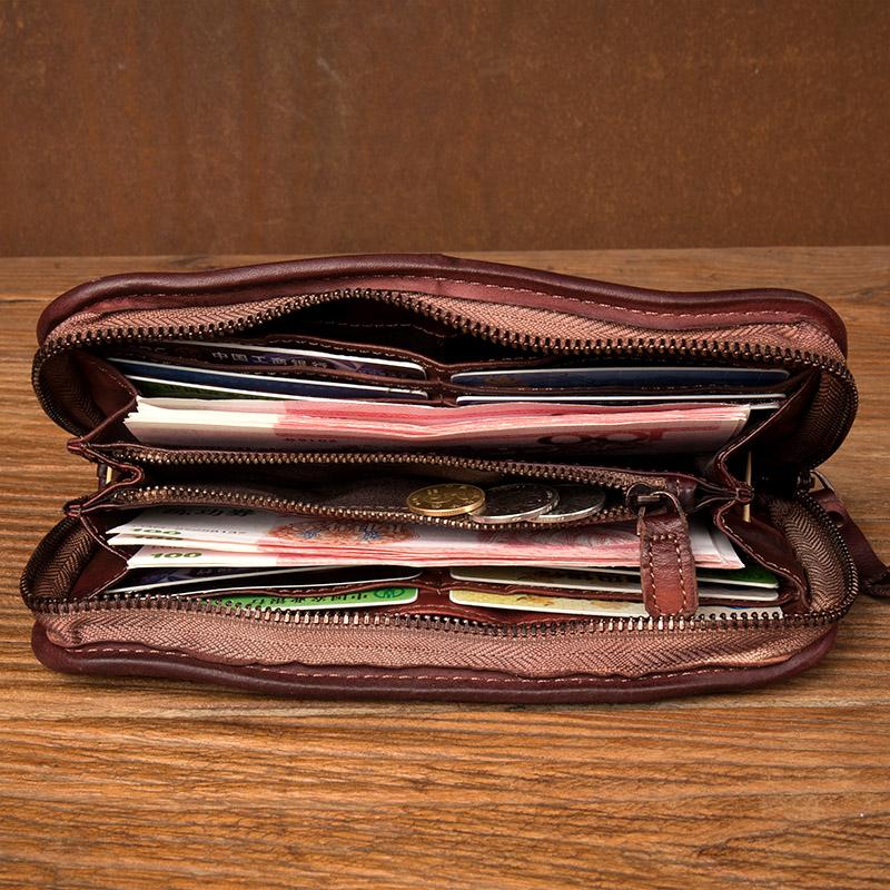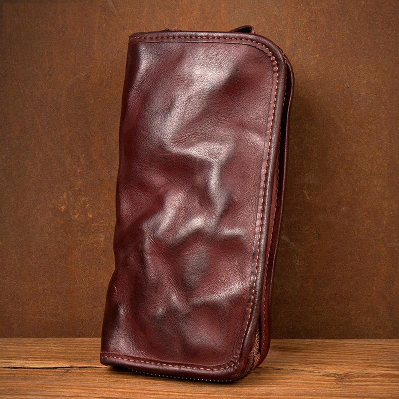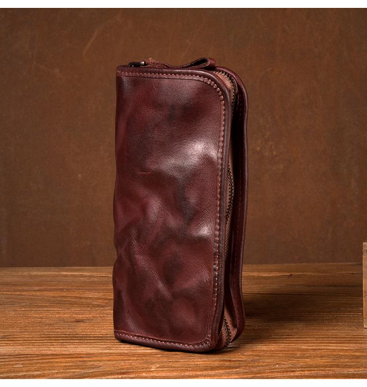 Design: Black Cool Mens long Wallet Red Brown Leather Bifold Wallet Long Wallets Mobile Bag for Men