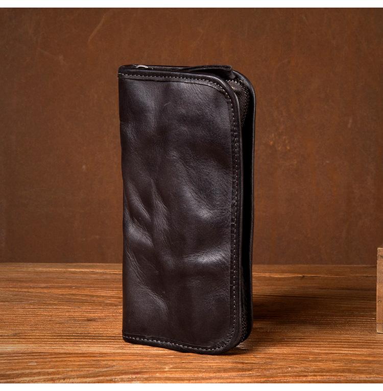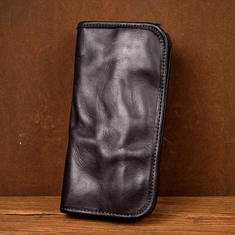 Style: Black Cool Mens long Wallet Red Brown Leather Bifold Wallet Long Wallets Mobile Bag for Men