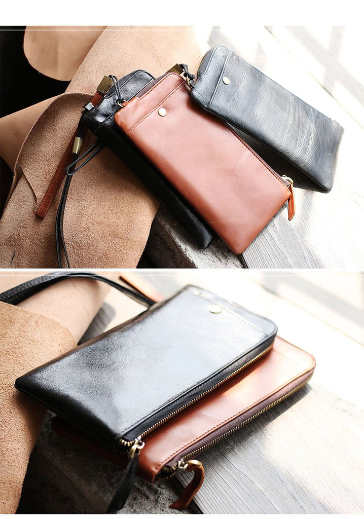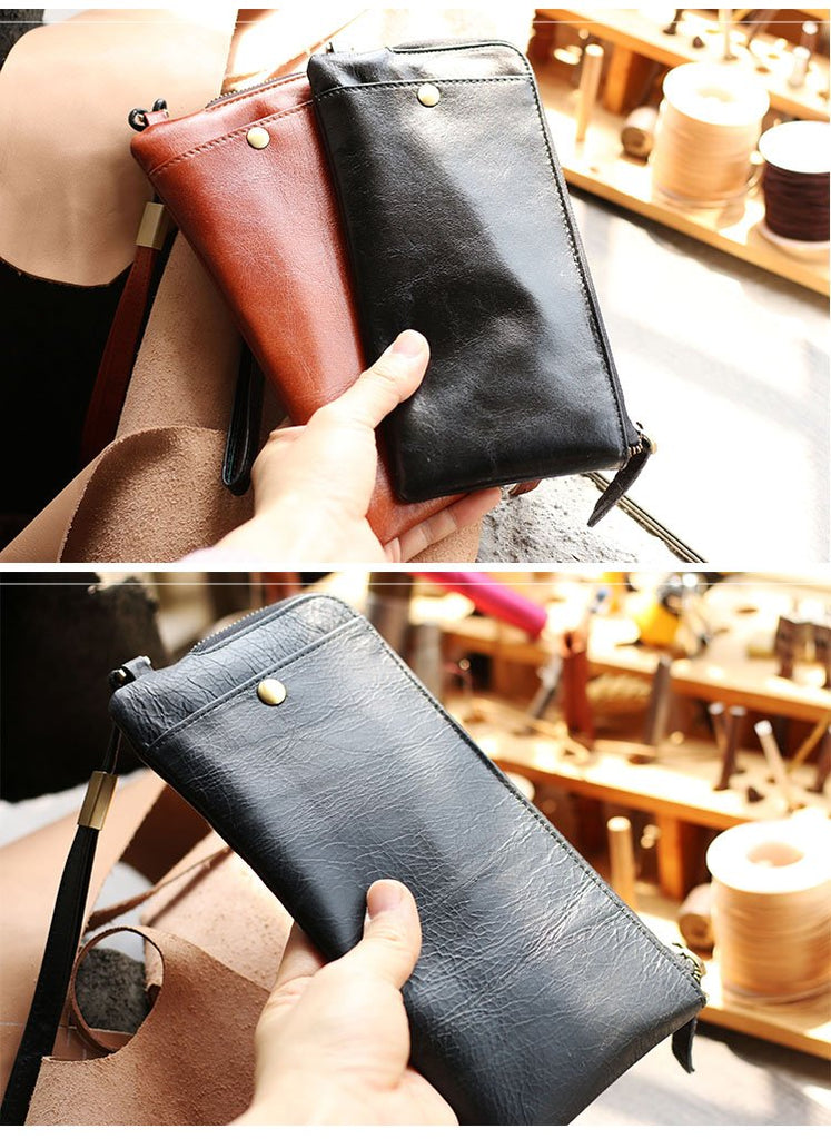 Style: Black Handmade Leather Mens Gray Blue Passport Holder Muticard Wallet Ticket Holder For Men
