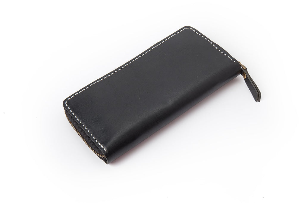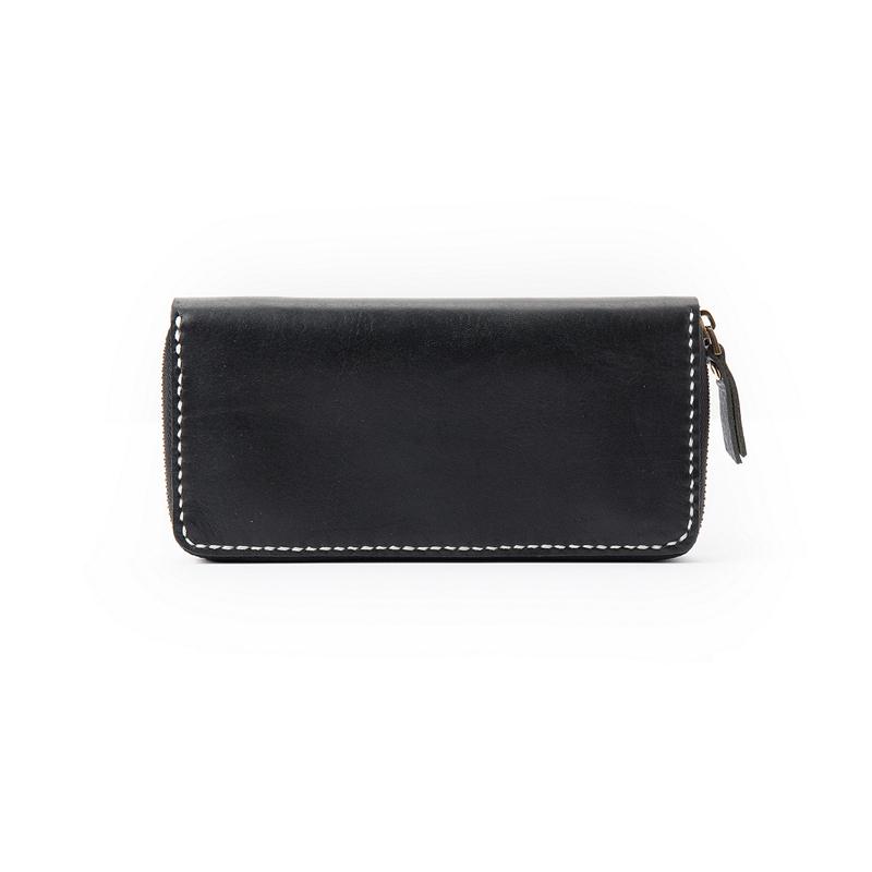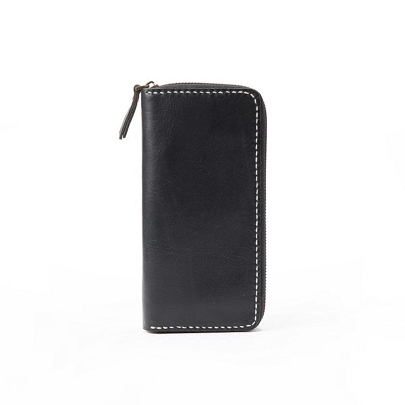 Style: Black Handmade Leather Mens Long Wallet Bifold Card Wallet Coin Purse For Men