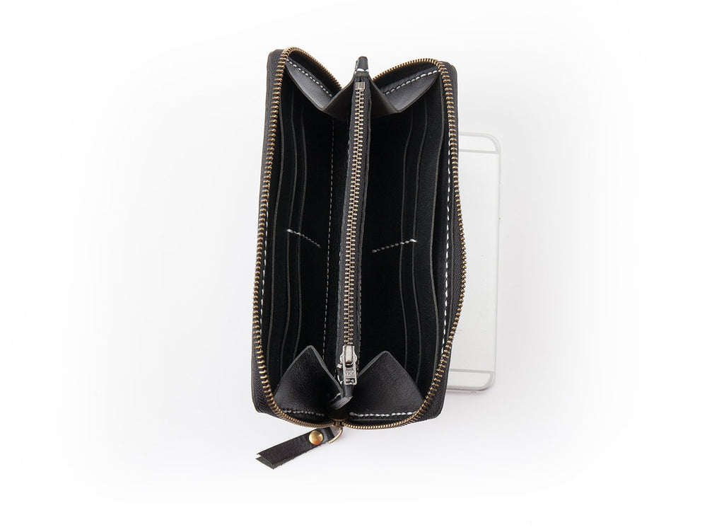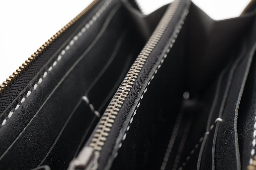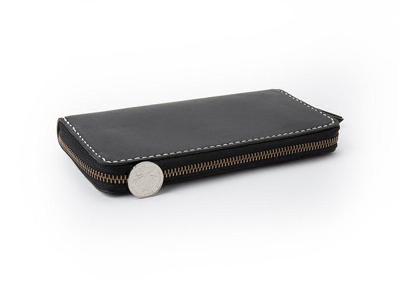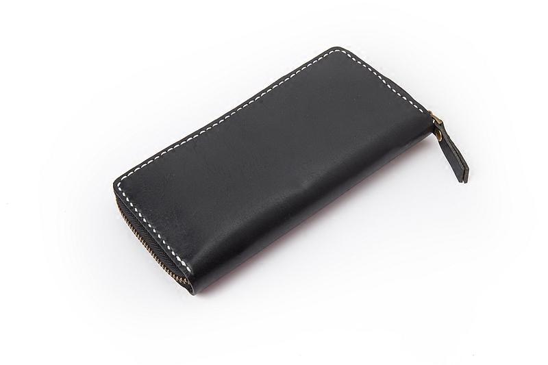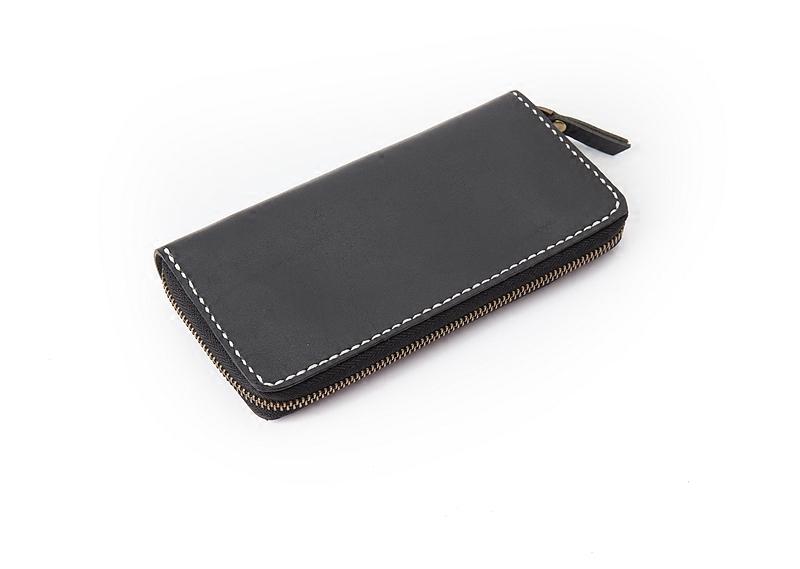 Design: Black Handmade Leather Mens Long Wallet Bifold Card Wallet Coin Purse For Men