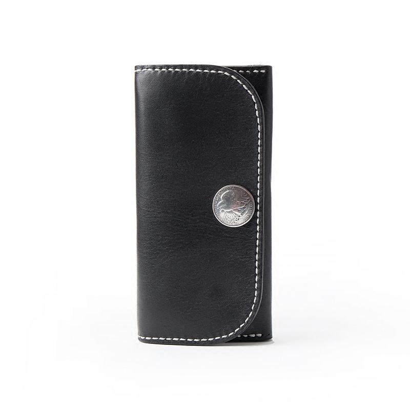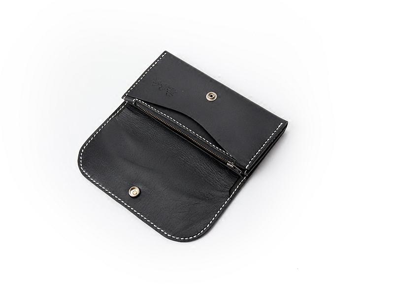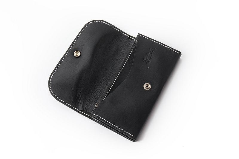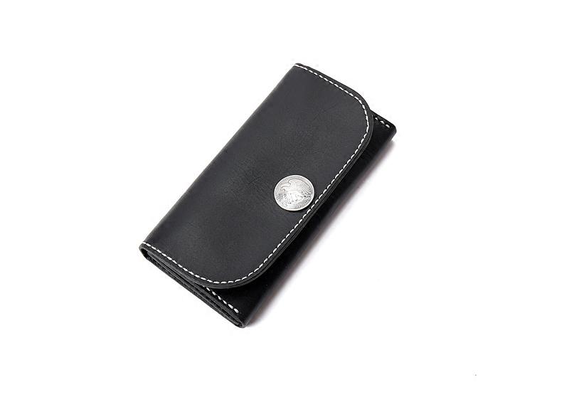 Design: Black Handmade Leather Mens Long Wallet Bifold Card Wallets Buckle Wallet For Men