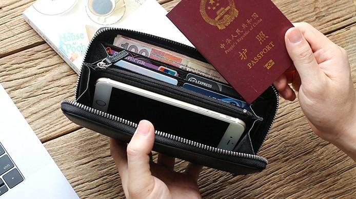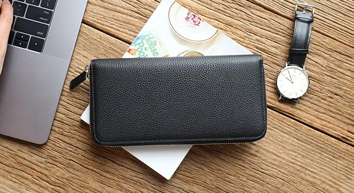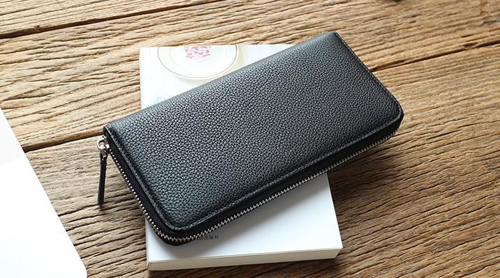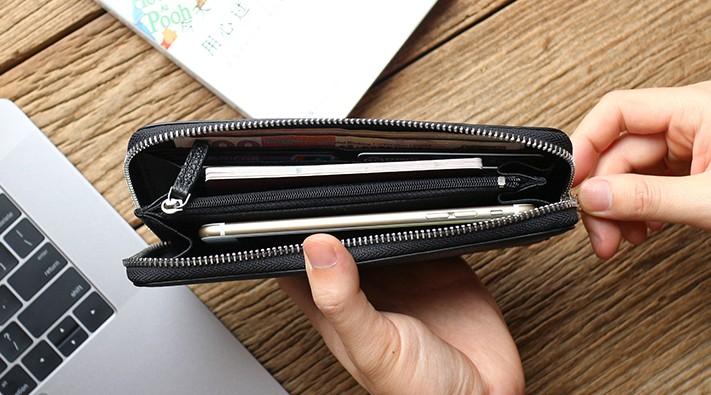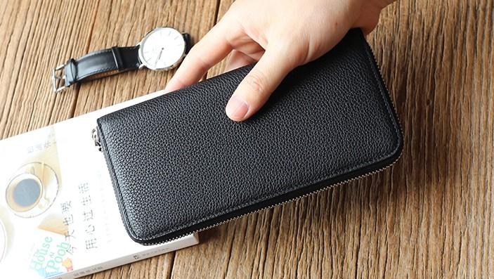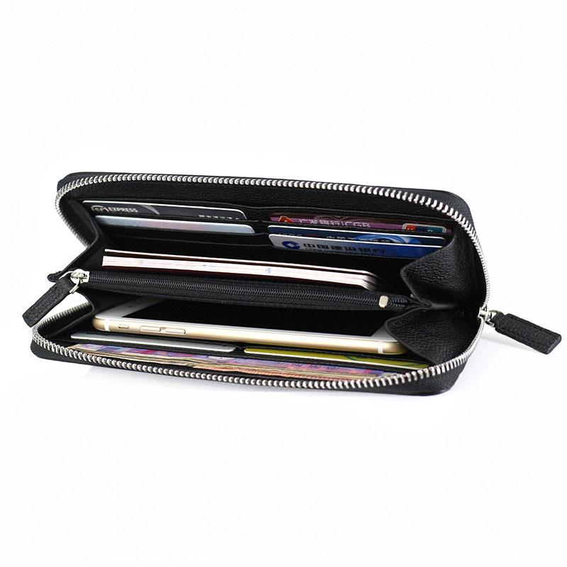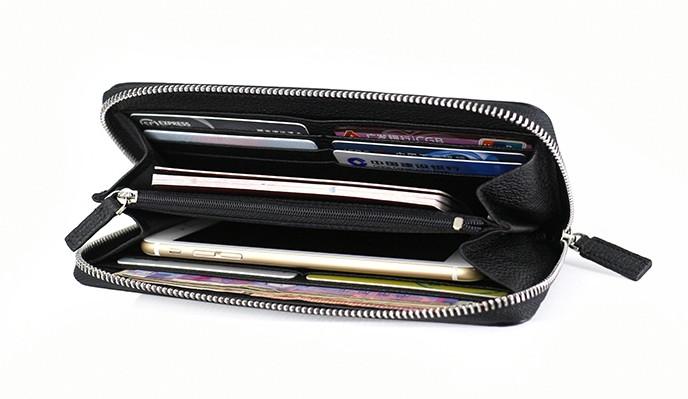 Design: Black Mens Leather Zipper Long Wallet Phone Long Bifold Wallet for Men