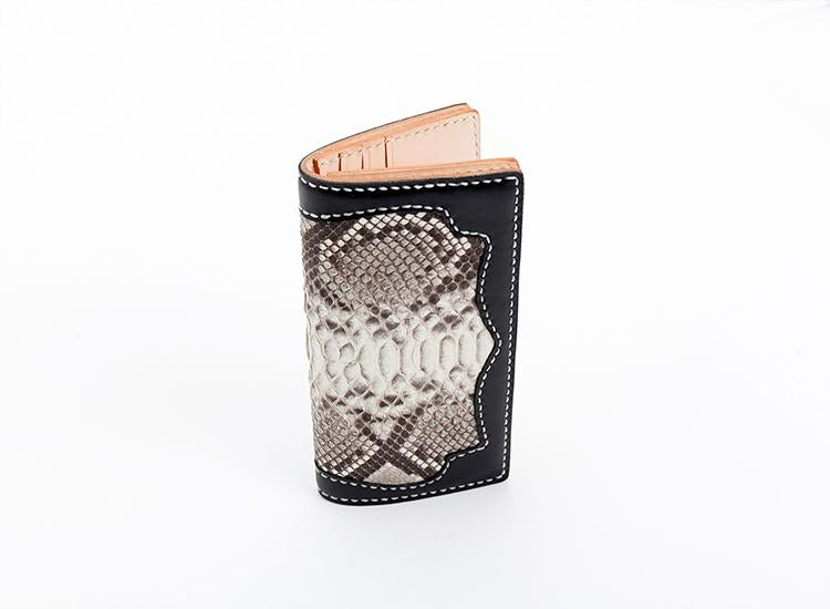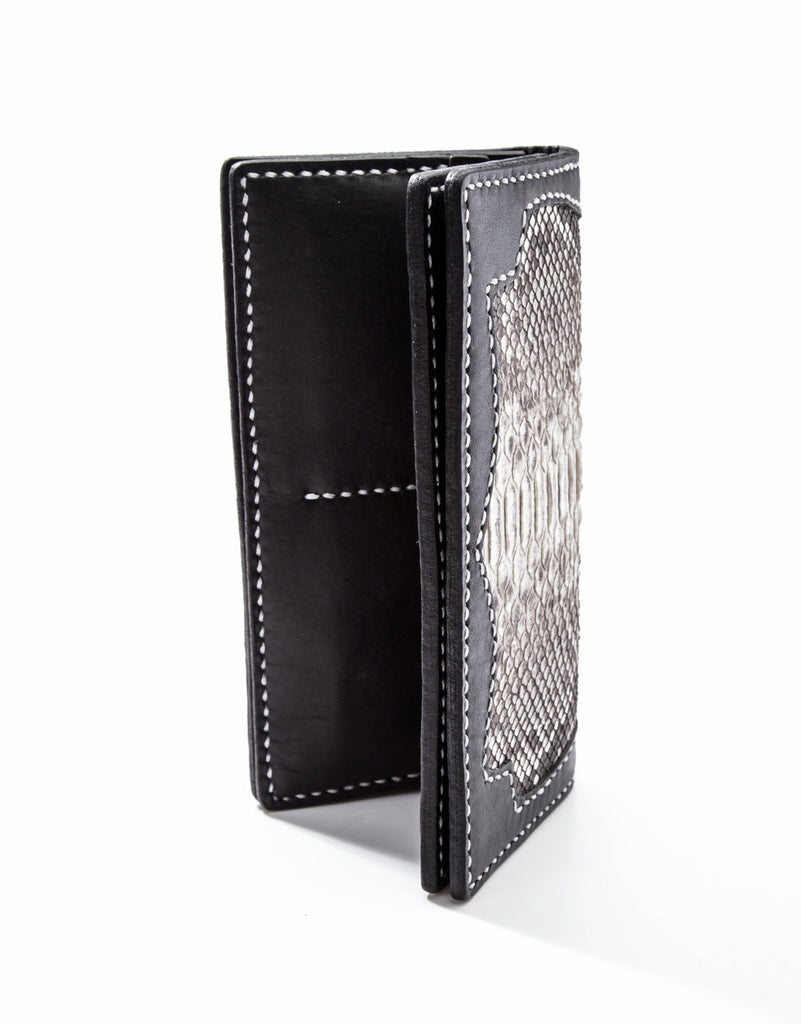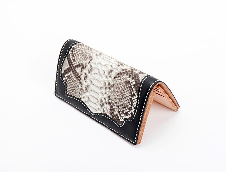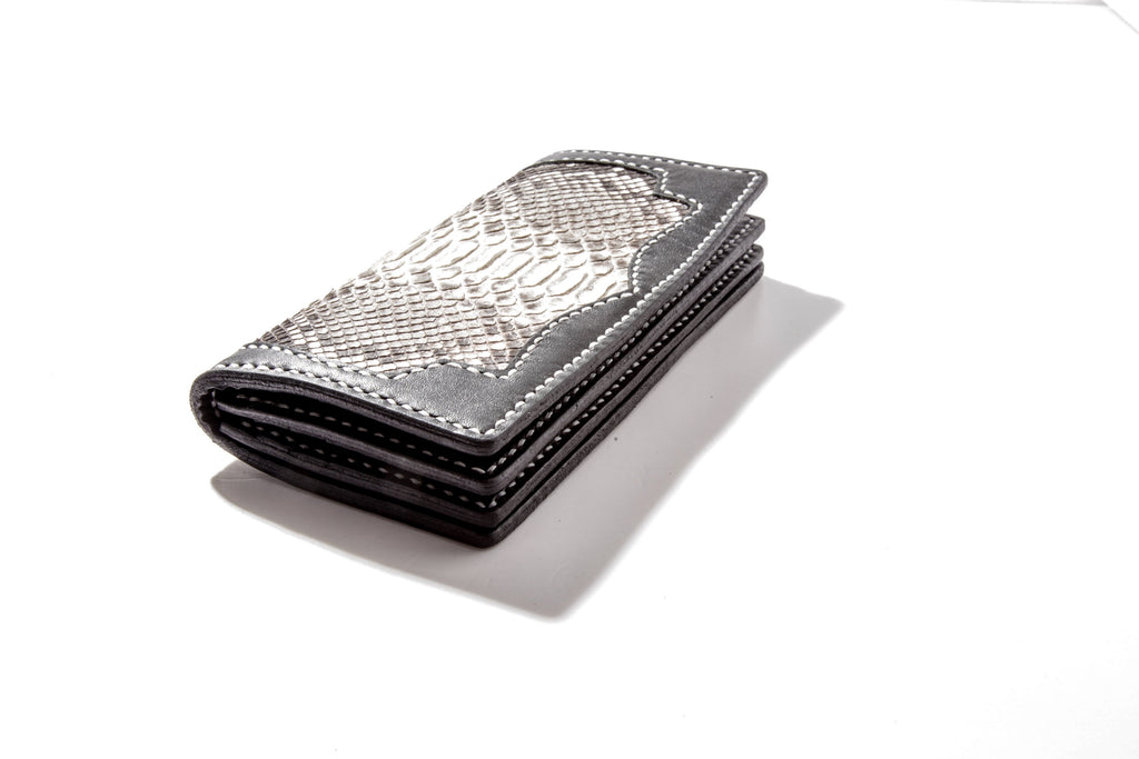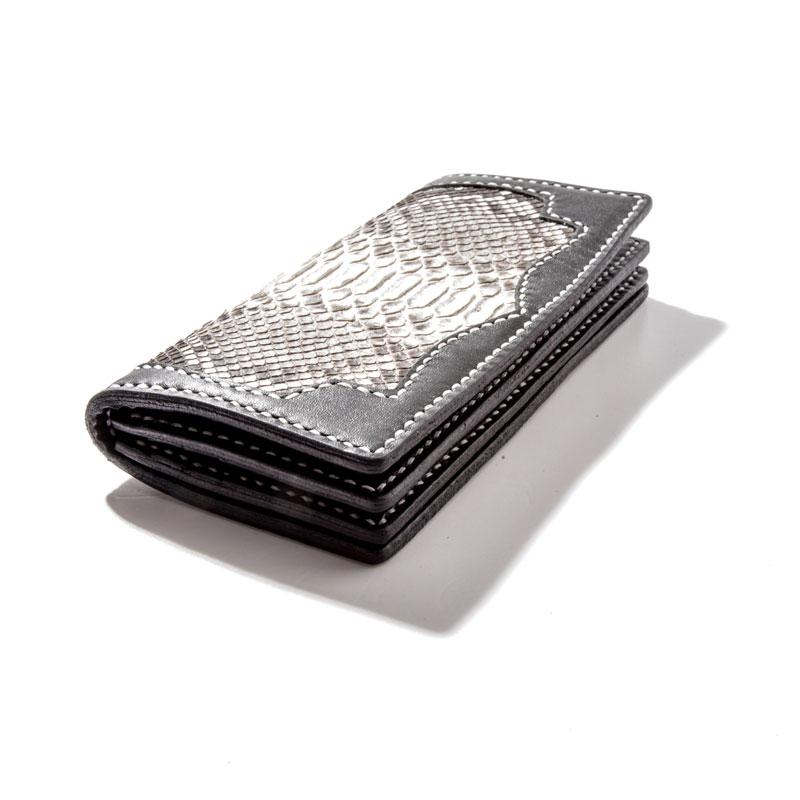 Design: Black Tanned Snakeskin Leather Mens Long Wallet Bifold Card Wallet Coin Purse For Men