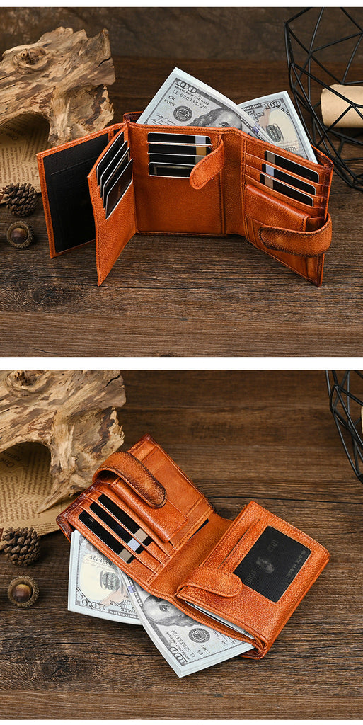 Style: Vintage tri-fold with secure closure