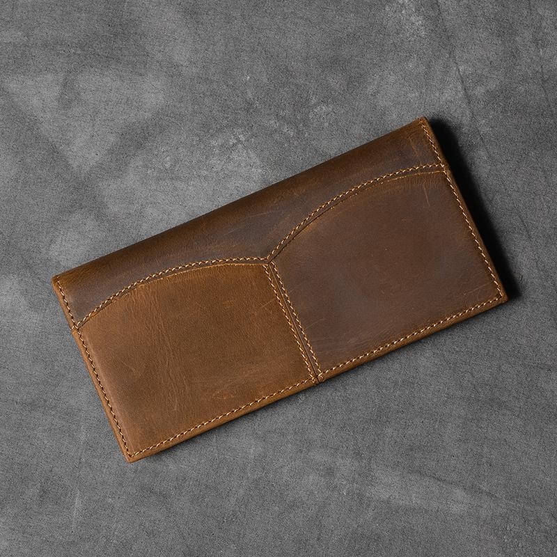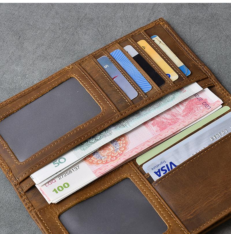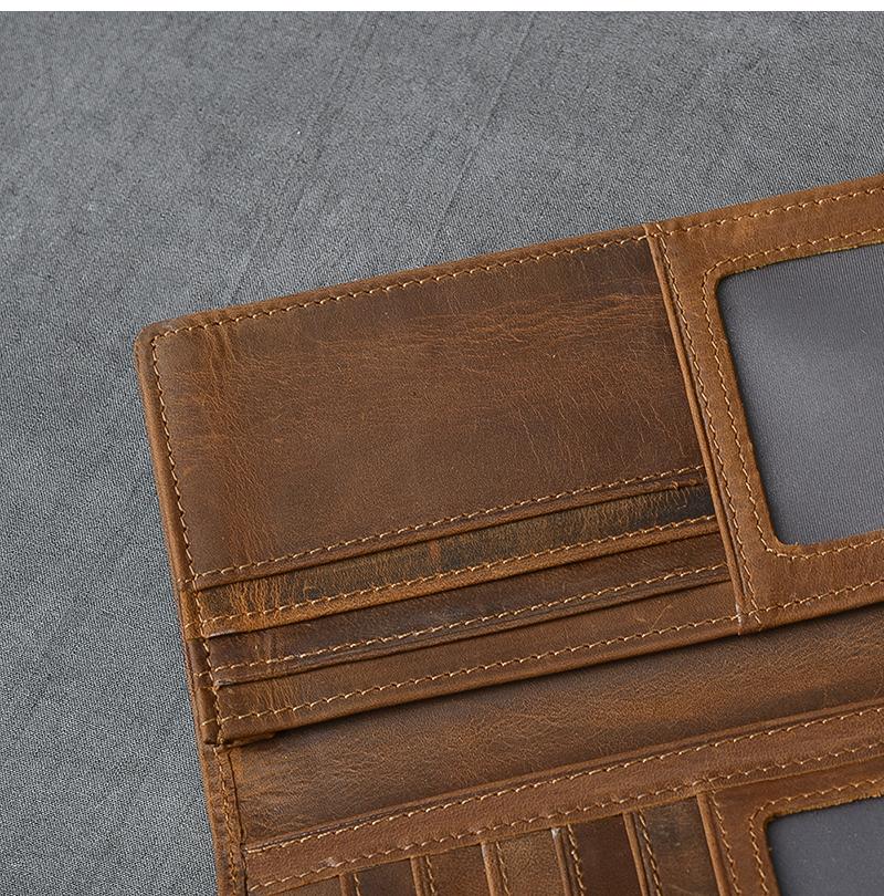 Design: Brown Waxed Leather Mens Long Wallet Long Bifold Card Wallet For Men