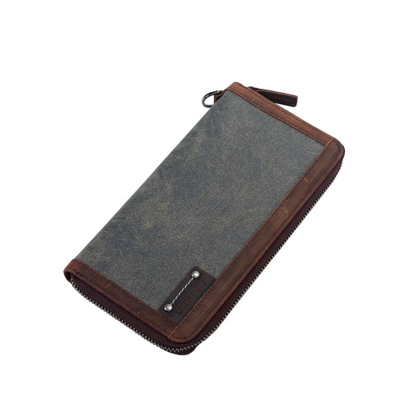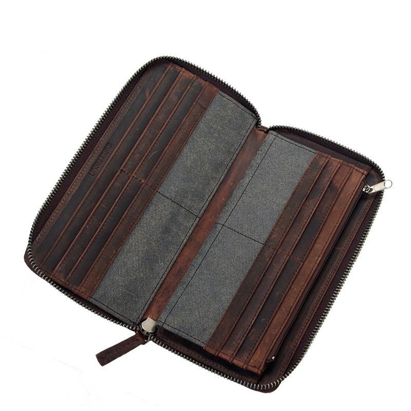 Style: Casual Black Canvas Leather Men's Long Wallet Bifold Card Wallets Coin Purse For Men