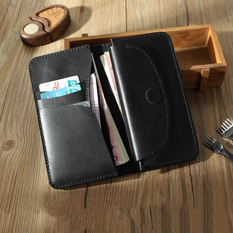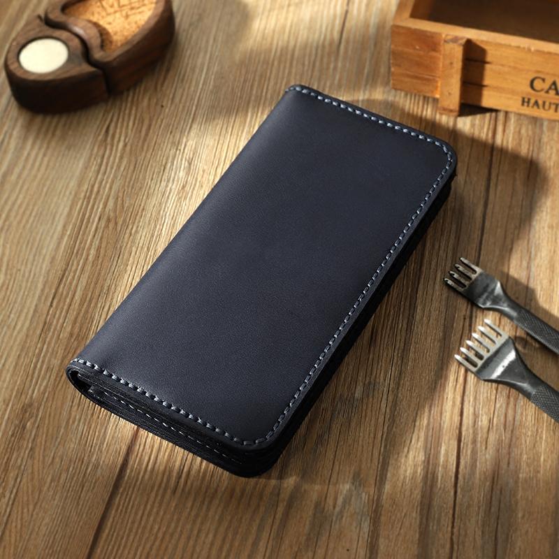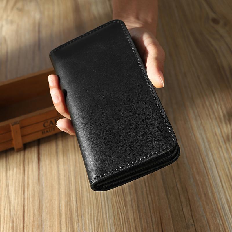 Style: Handmade Coffee Leather Mens Bifold Long Wallets Personalized Coffee Checkbook Leather Wallets for Men