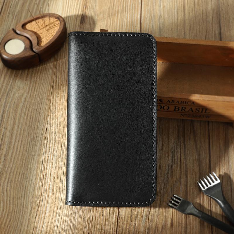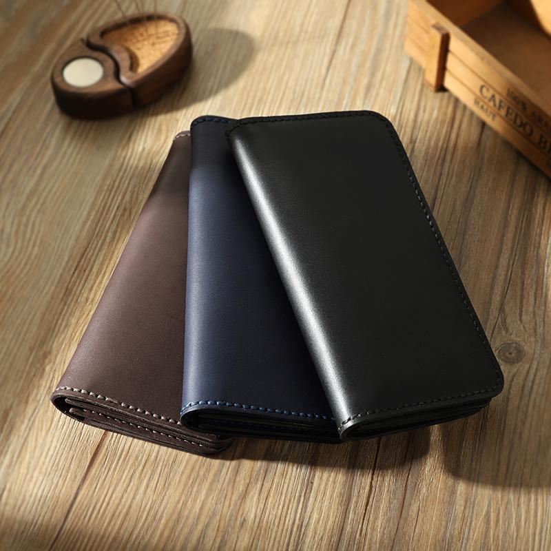 Design: Handmade Coffee Leather Mens Bifold Long Wallets Personalized Coffee Checkbook Leather Wallets for Men