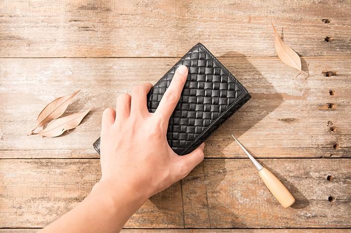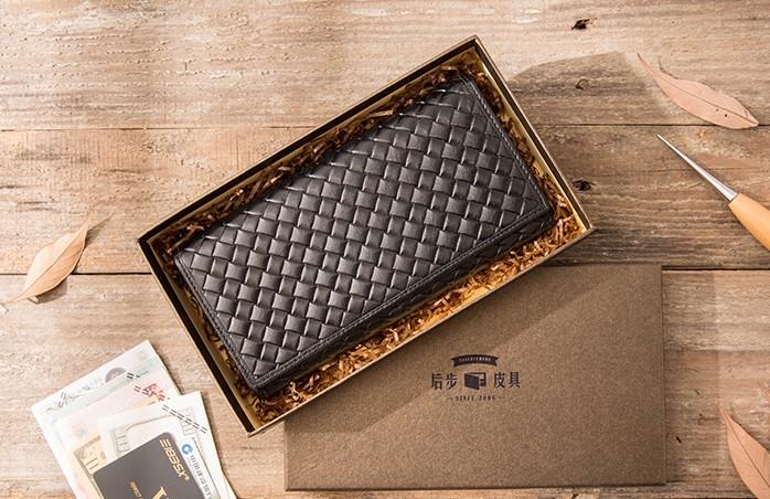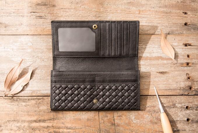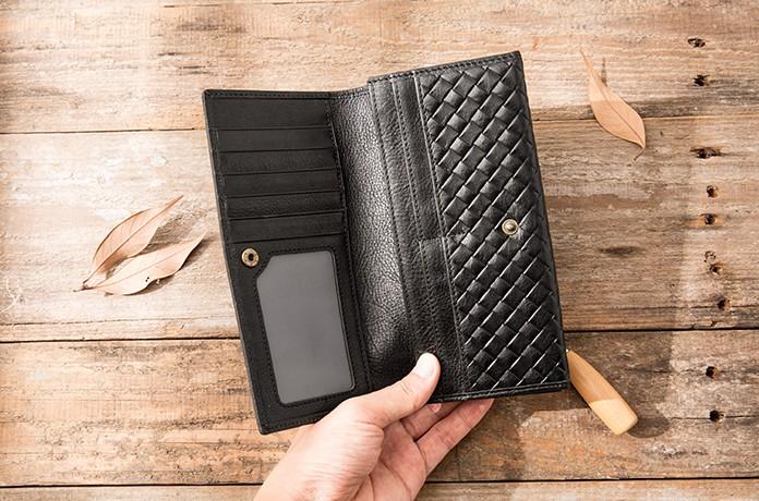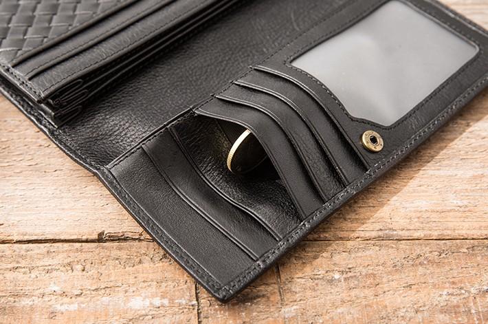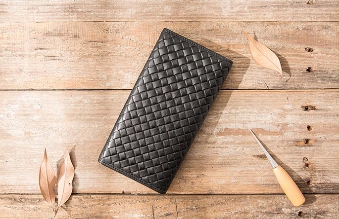 Design: Cool Black Braided Leather Mens Long Wallet Long Wallet for Men
