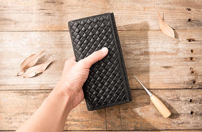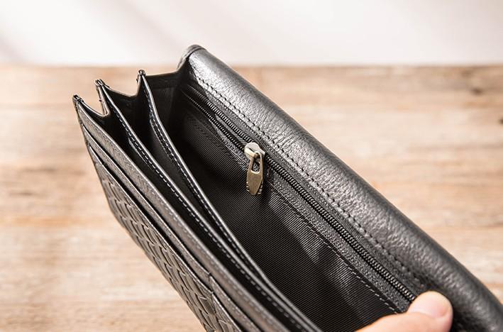 Style: Cool Black Braided Leather Mens Long Wallet Long Wallet for Men