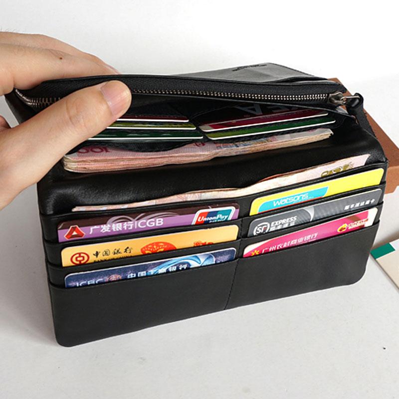 Cool Black Mens Leather Bifold Long Wallet Phone Soft Leather Long Wallet for Men