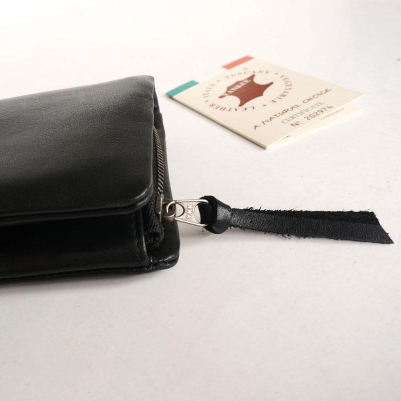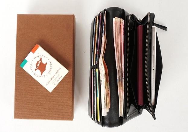 Slots: 3 full size bill slots, 12 card holders, 1 zipper slot