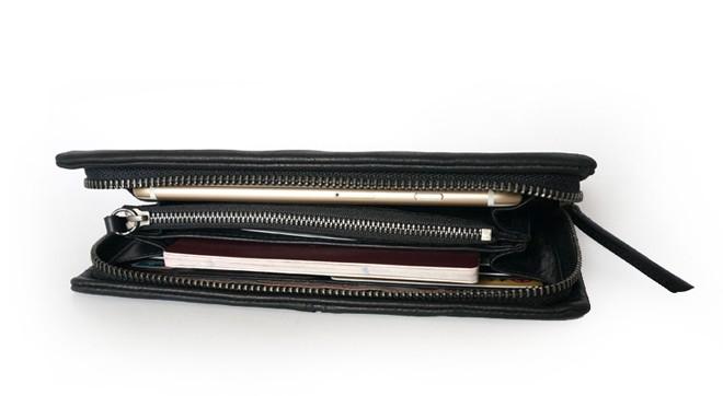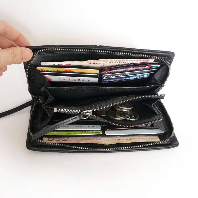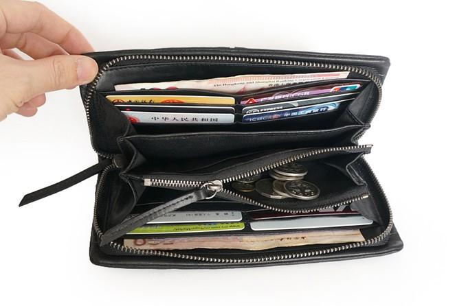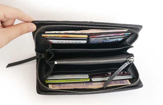 Slots: 2 full size bill slots, 12 card holders, 1 zipper slot