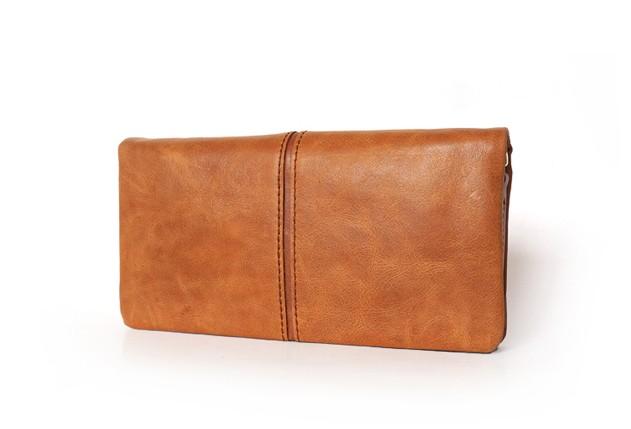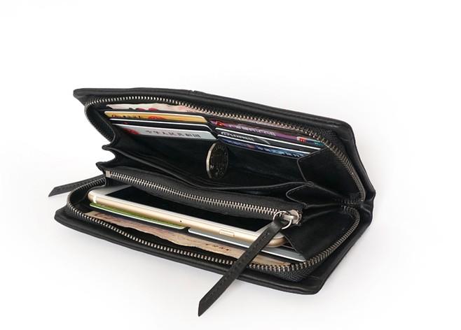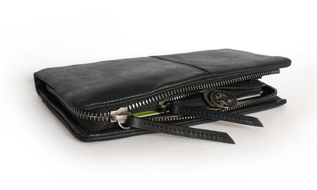Design: Cool Brown Mens Leather Zipper Long Wallet Phone Long Bifold Wallet for Men