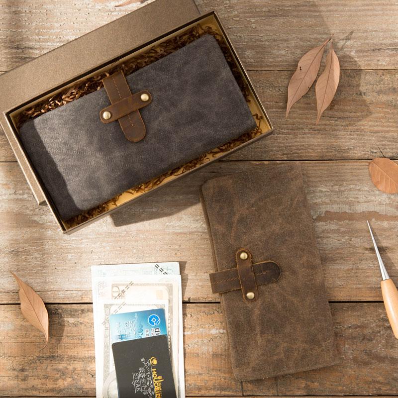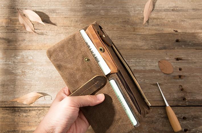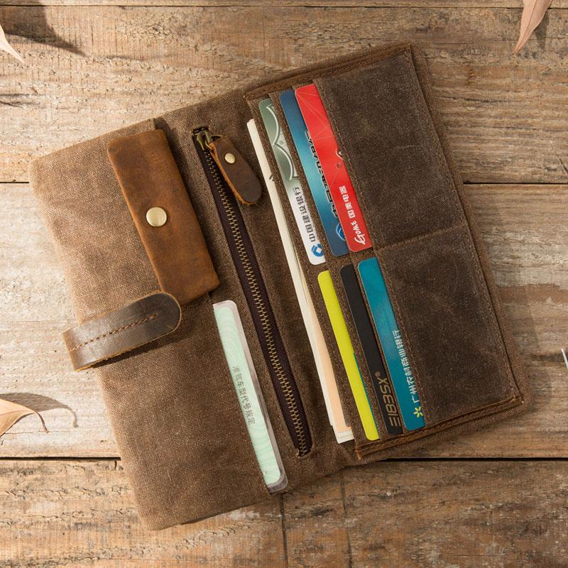 Style: Cool Canvas Leather Mens Long Wallet Long Wallet for Men