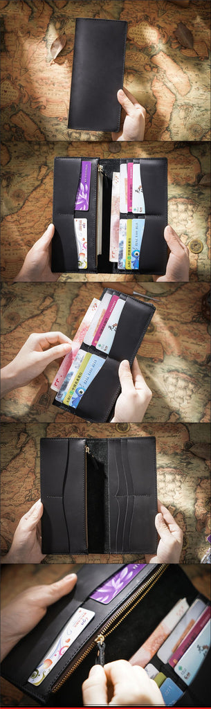 Design: Cool Coffee Mens Leather Black Multi-Card Long Wallets Bifold Long Wallet for Men
