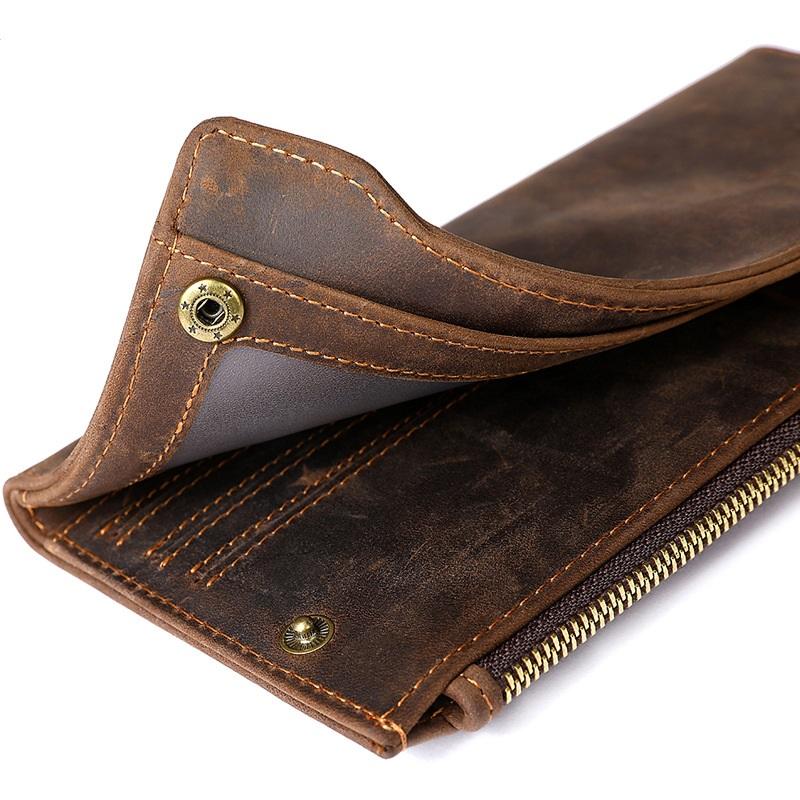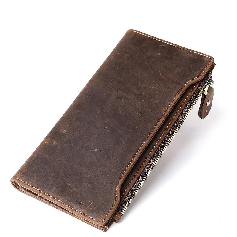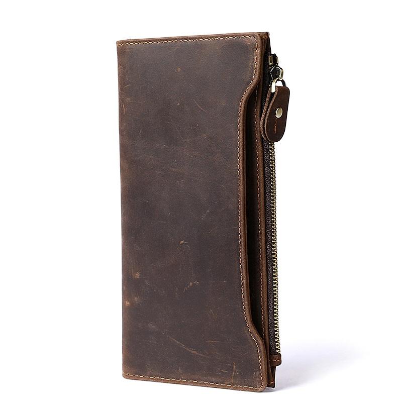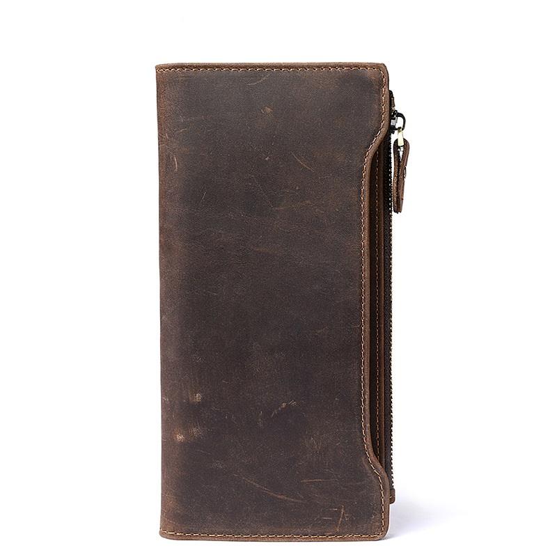 Design: Cool Dark Brown Mens Leather Large Long Wallet Bifold Long Multi-Card Wallet for Men